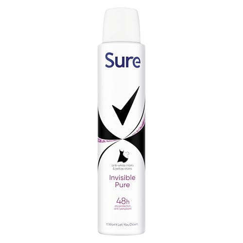 Sure Invisible Pure Anti-Perspirant Aerosol Women's Deodorant Spray that protects against white marks and yellow stains for 48 hou