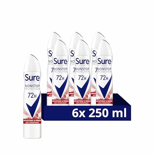 Sure Women Nonstop Protection Bright Bouquet Deodorant Body Spray Antiperspirant with a strawberry and vanilla scent & body heat activated technology for 72 hour sweat protection 250 ml, Pack of 6
