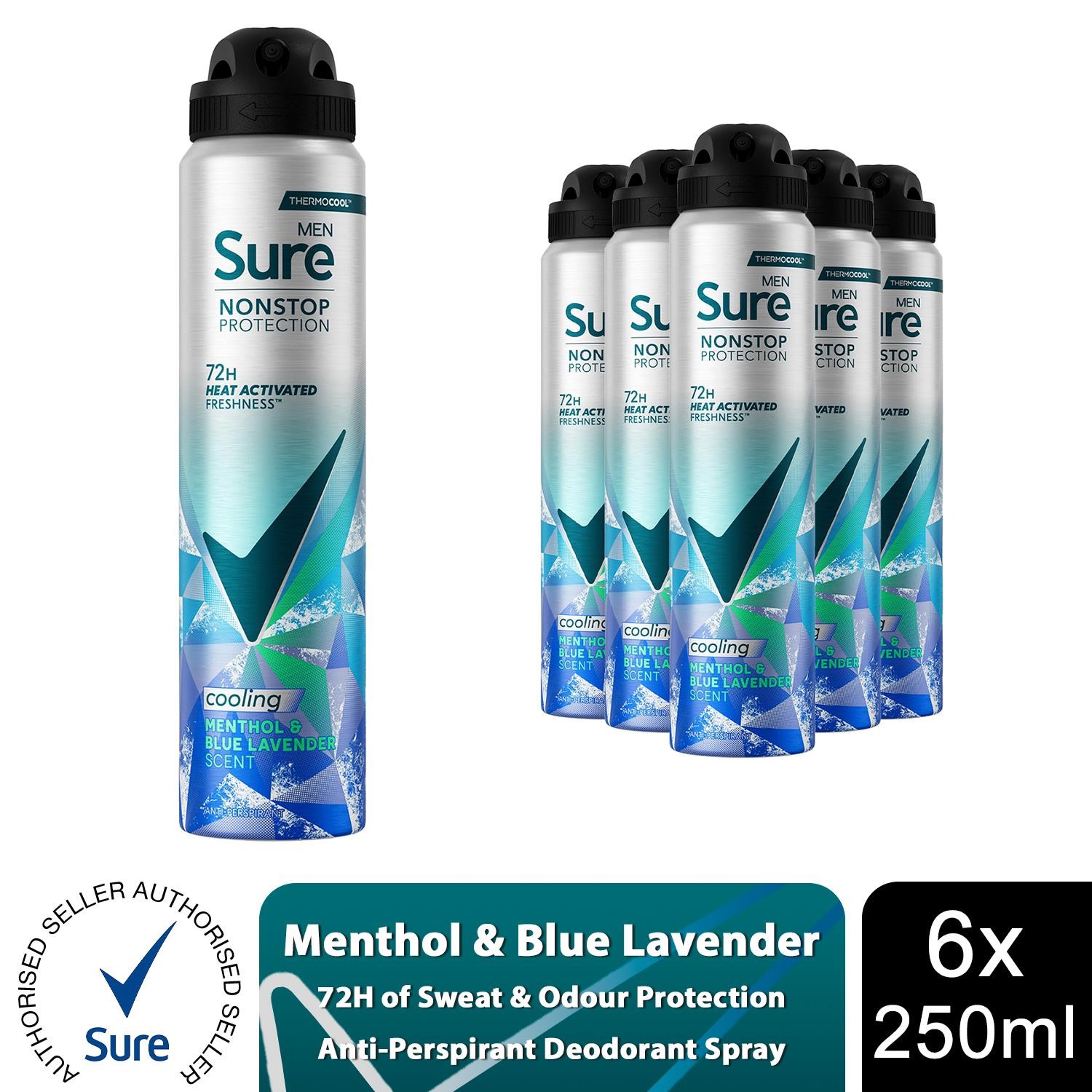 Sure Menthol & Lavender Anti-Perspirant Spray 250 ml, 6pk