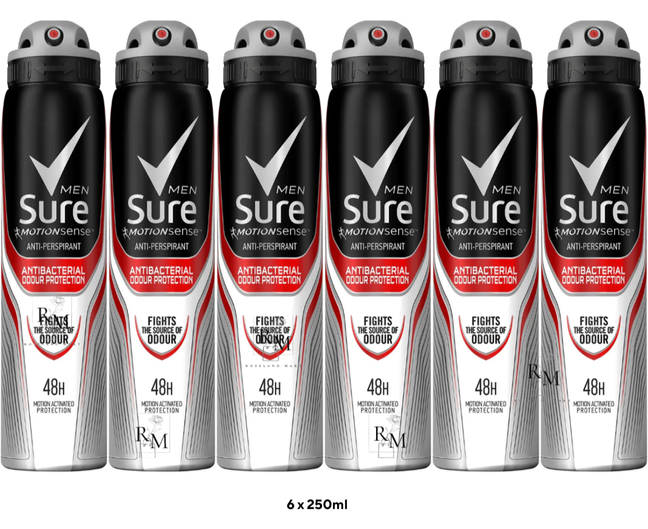 6 x250ml Sure Men Antibacterial Odour Protection Anti-Perspirant Deodorant Spray