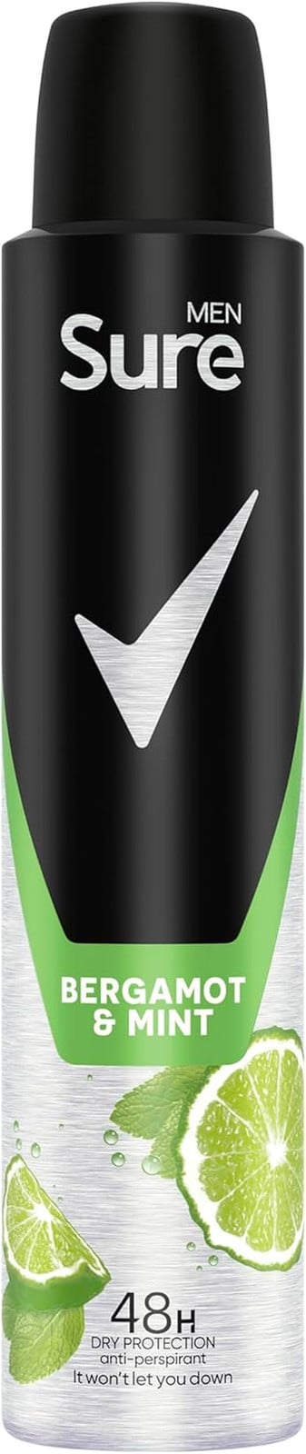Sure Men Bergamot & Mint Anti-Perspirant Aerosol Men’S Deodorant Spray with an E