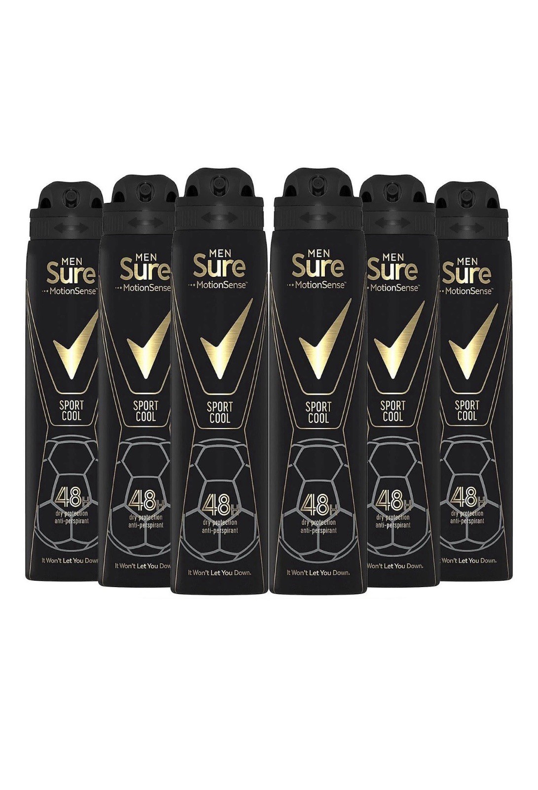 6x 250ml Sure Sport Cool 48h Anti Sweat Antibacterial odour Antiperspirant Spray