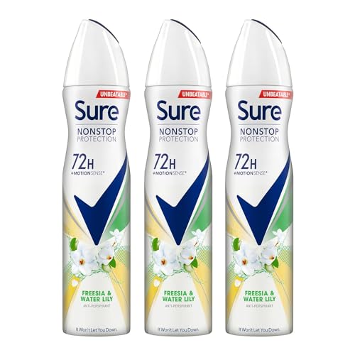 Sure Antiperspirant 72H Nonstop Sweat and Odour Protection Alcohol-Free Body Spray Anti-White Markswith Fresh and Clean Multi Fragrance Deodorant for Women, 250ml (Freesia&Water lily, Buy 3)