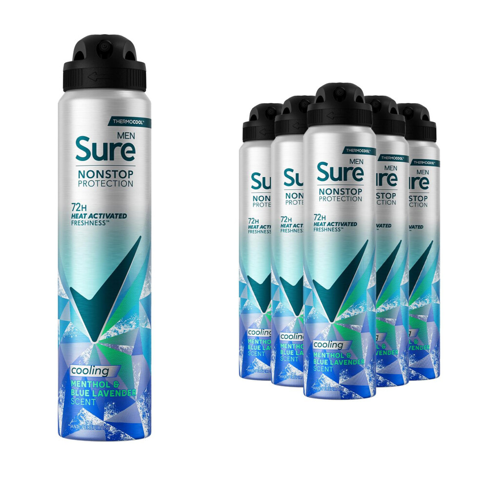 Sure Men Nonstop Protection Menthol & Lavender Anti-Perspirant Spray 250 ml, 6pk