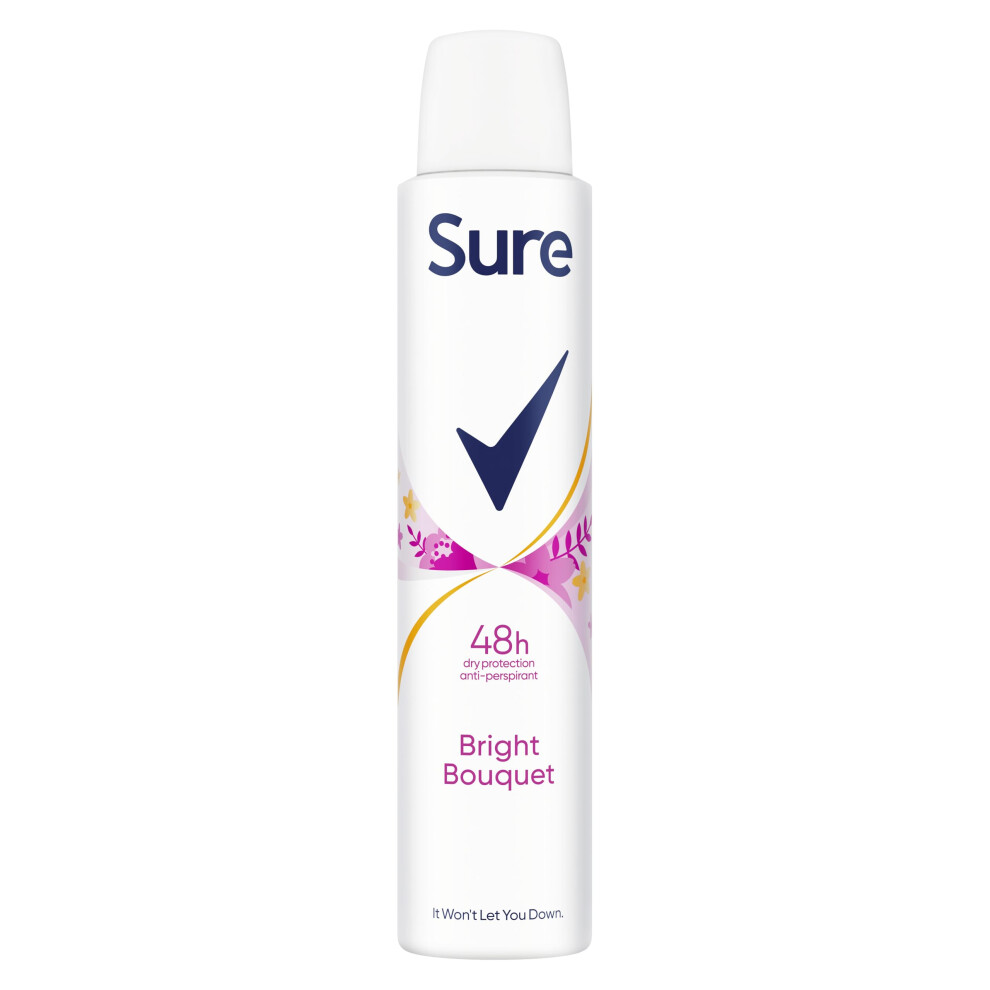 Sure Bright Bouquet Anti-Perspirant Aerosol Women's Deodorant Spray with a strawberry, apricot & vanilla fragrance for 48 hour sweat and odour protec