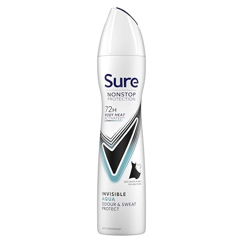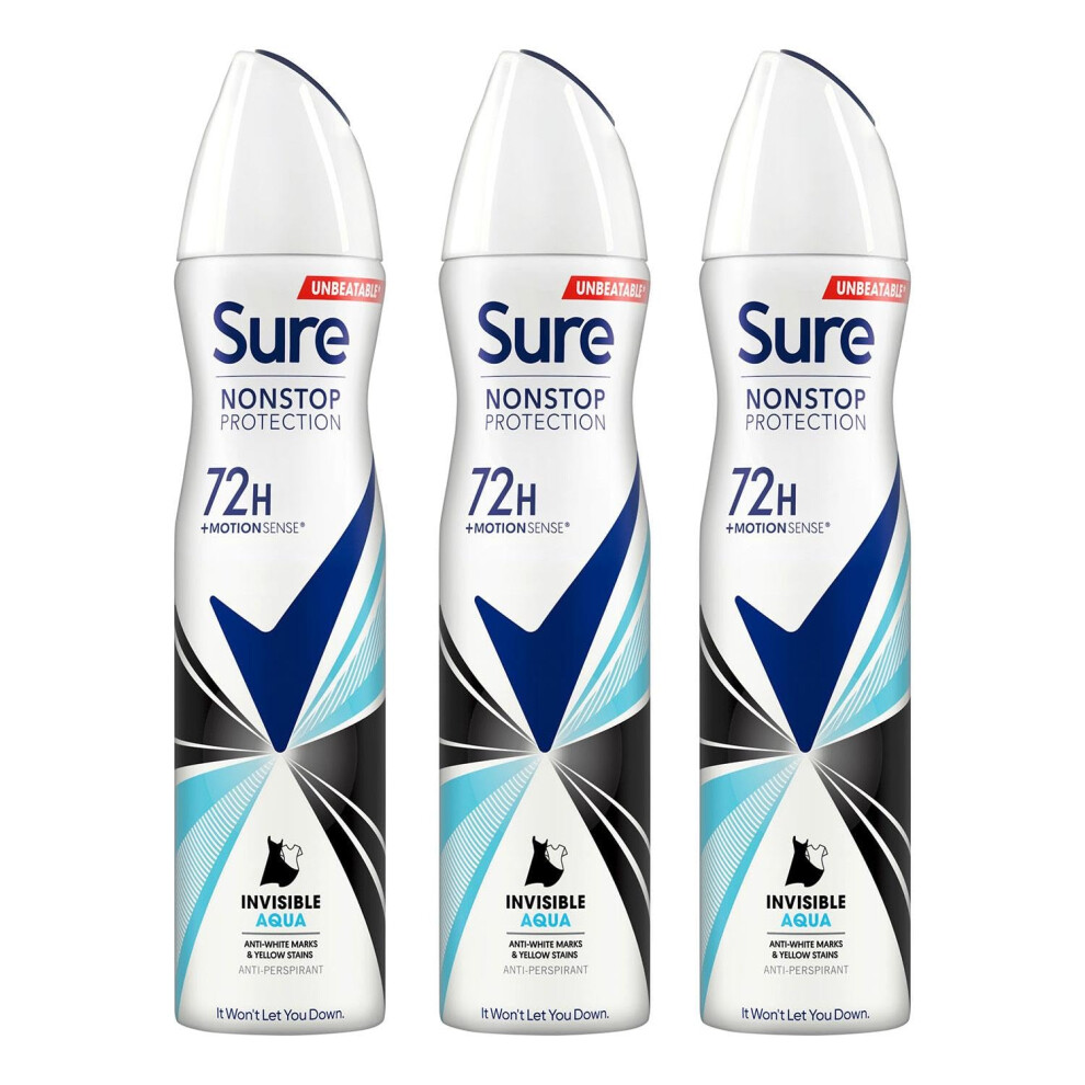 Sure Nonstop Protection Invisible Aqua Anti-Perspirant Aerosol Women's Deodorant Spray with Body Heat Activated technology and white mark protection for 72 hour odour and sweat protection 150 ml