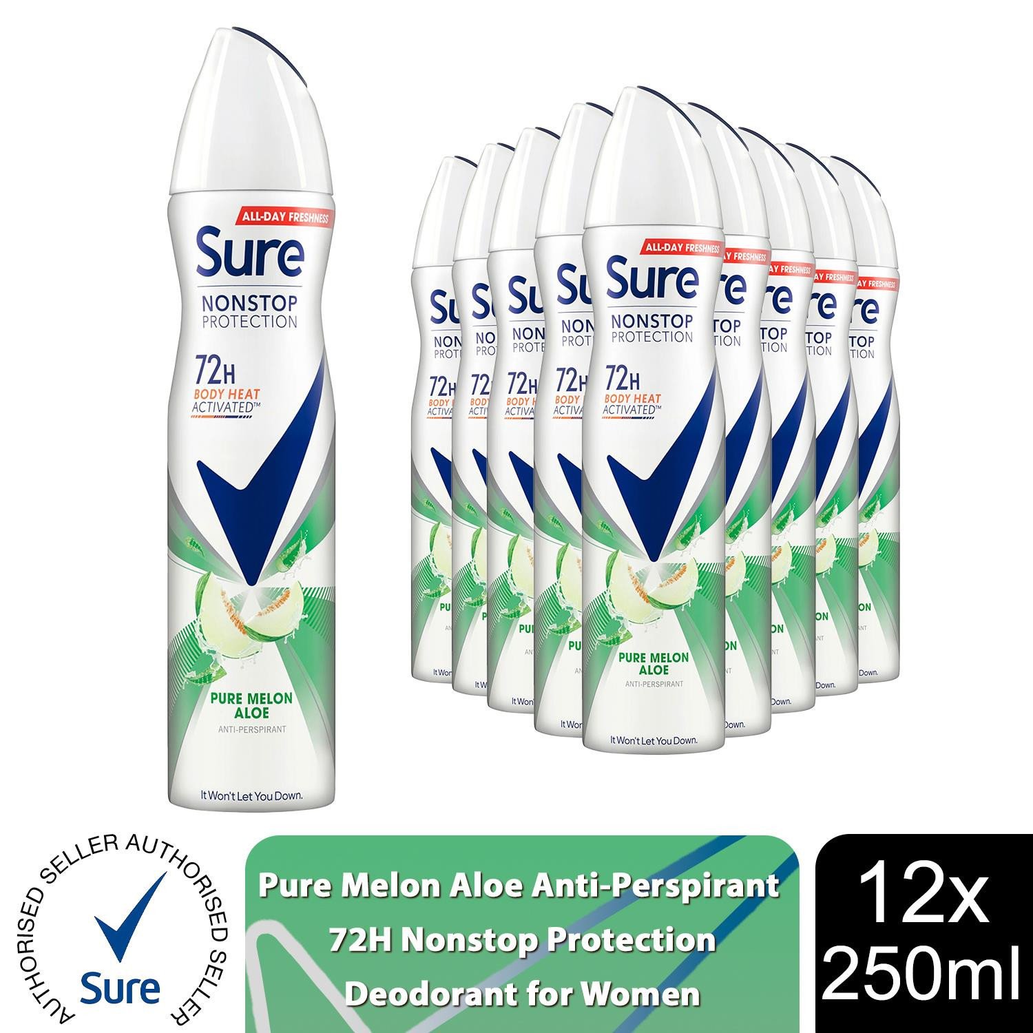 Sure Women Pure Melon Aloe Spray Nonstop Protection Antiperspirant Deo, 12x250ml