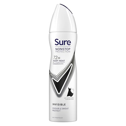 Sure Nonstop Protection Invisible Black & White Anti-Perspirant Aerosol Women's Deodorant Spray with Body Heat Activated tech. and white mark protection for 72 hour odour and sweat protection 150 ml