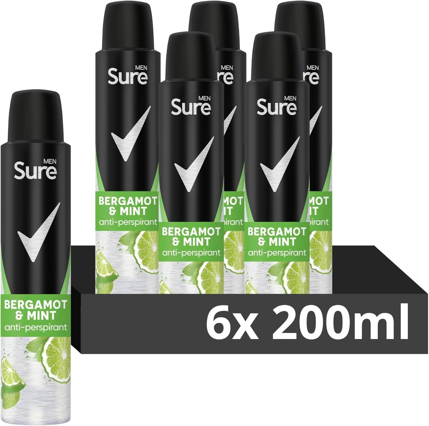 Sure Men Bergamot & Mint Deodorant Body Spray Antiperspirant with an Energising