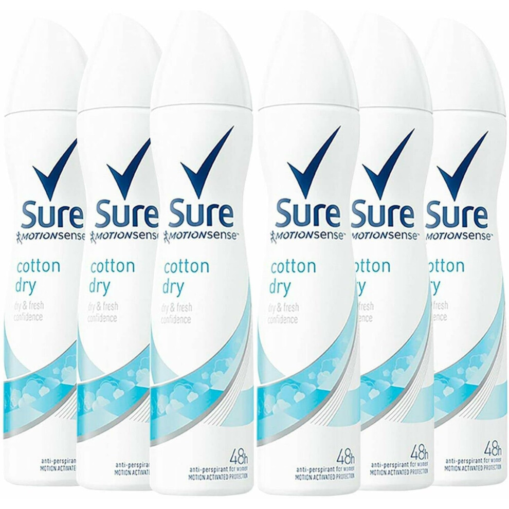 Sure Cotton Dry Anti-Perspirant Aerosol Women's Deodorant Spray with a clean fragrance inspired by fresh cotton sheets for 48 hour protection against sweat and odour 6x 200 ml