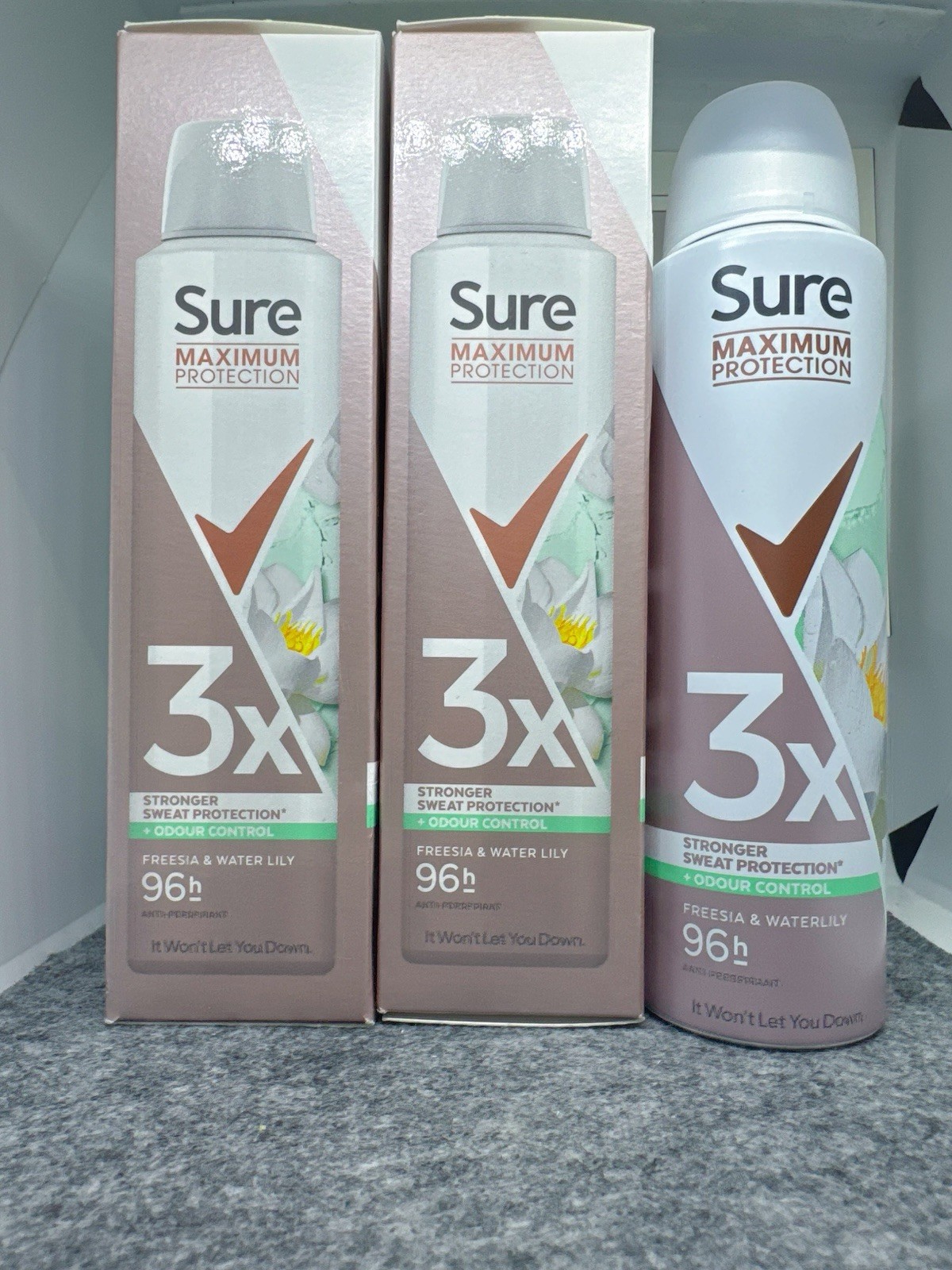 2x 150ml Sure Women Maximum Protection Antiperspirant Spray Freesia Water Lily