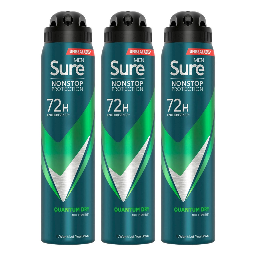 3 X SURE ACTIVE 48HR ANTIPERSPIRANT DEODORANT SPRAY 150MLS NEW FREE P&P