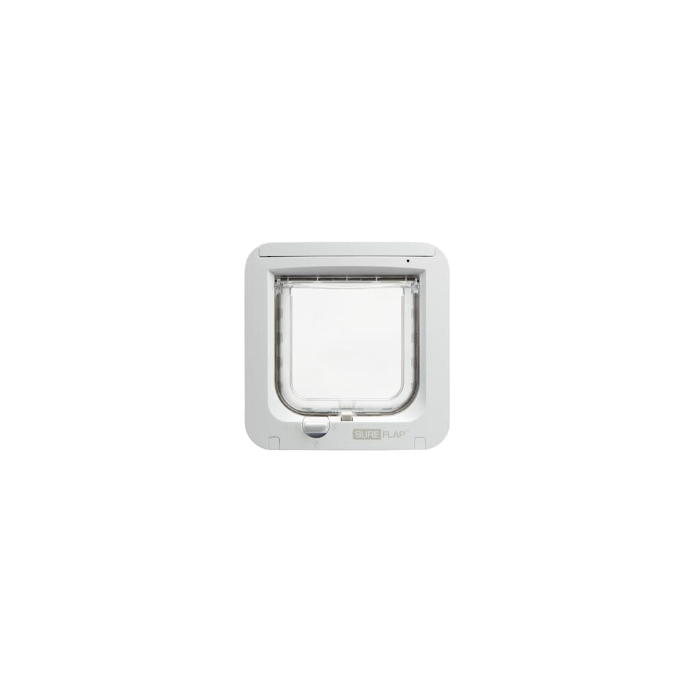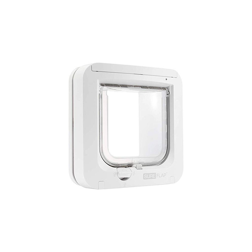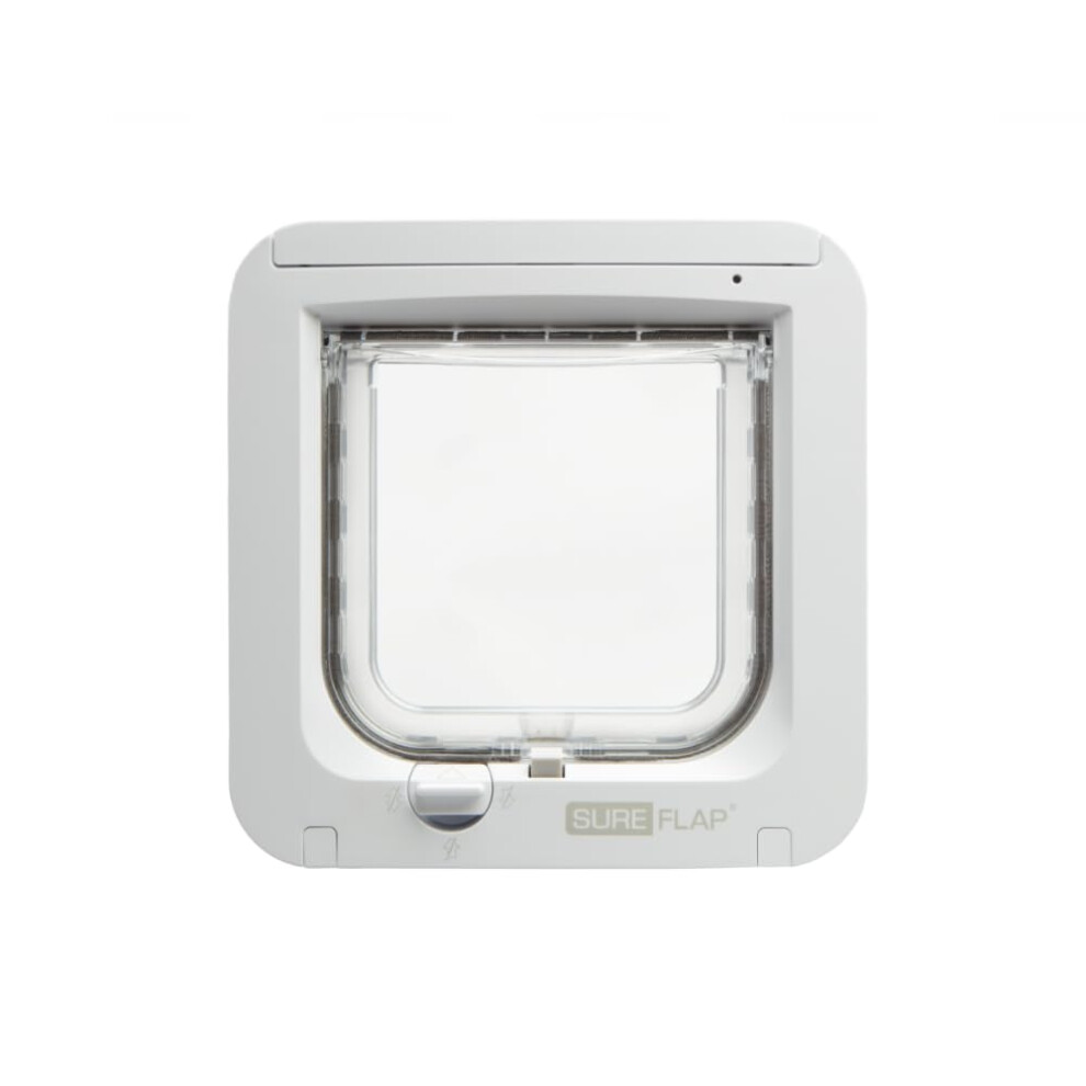 Sure Petcare SureFlap Microchip Cat Flap, RFID Collar Tags and Microchip Compatible, One-Button Control, Install in Doors, Windows and Walls, White, 4 x AA Batteries Required, Not Included