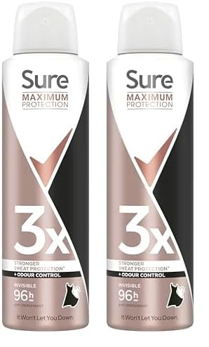 Sure Maximum Protection Invisible Anti-Perspirant Aerosol Women's Deodorant Spray with 3x stronger* sweat protection for 96 hour sweat and odour protection 150 ml (Pack of 2)