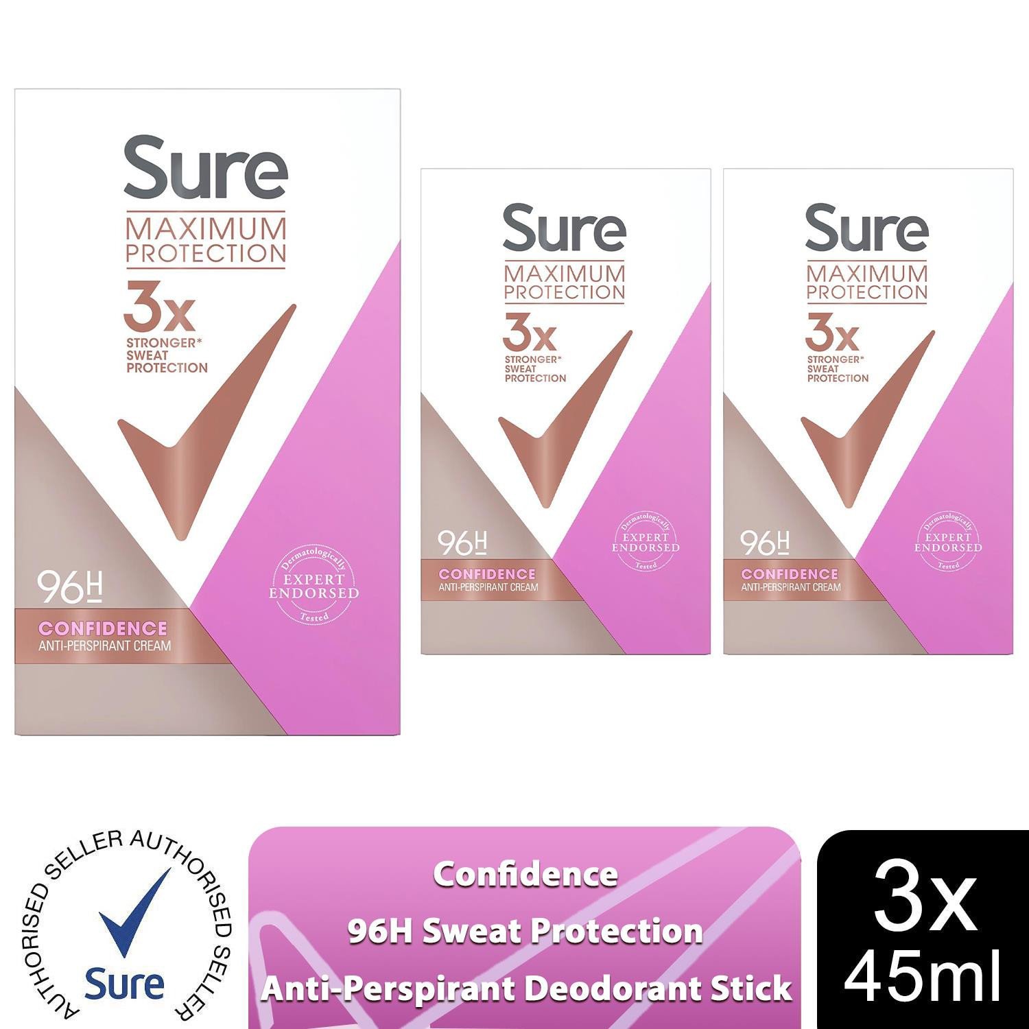 Sure Women Maximum Protection Confidence Anti-Perspirant Cream, 3 Pack, 45ml