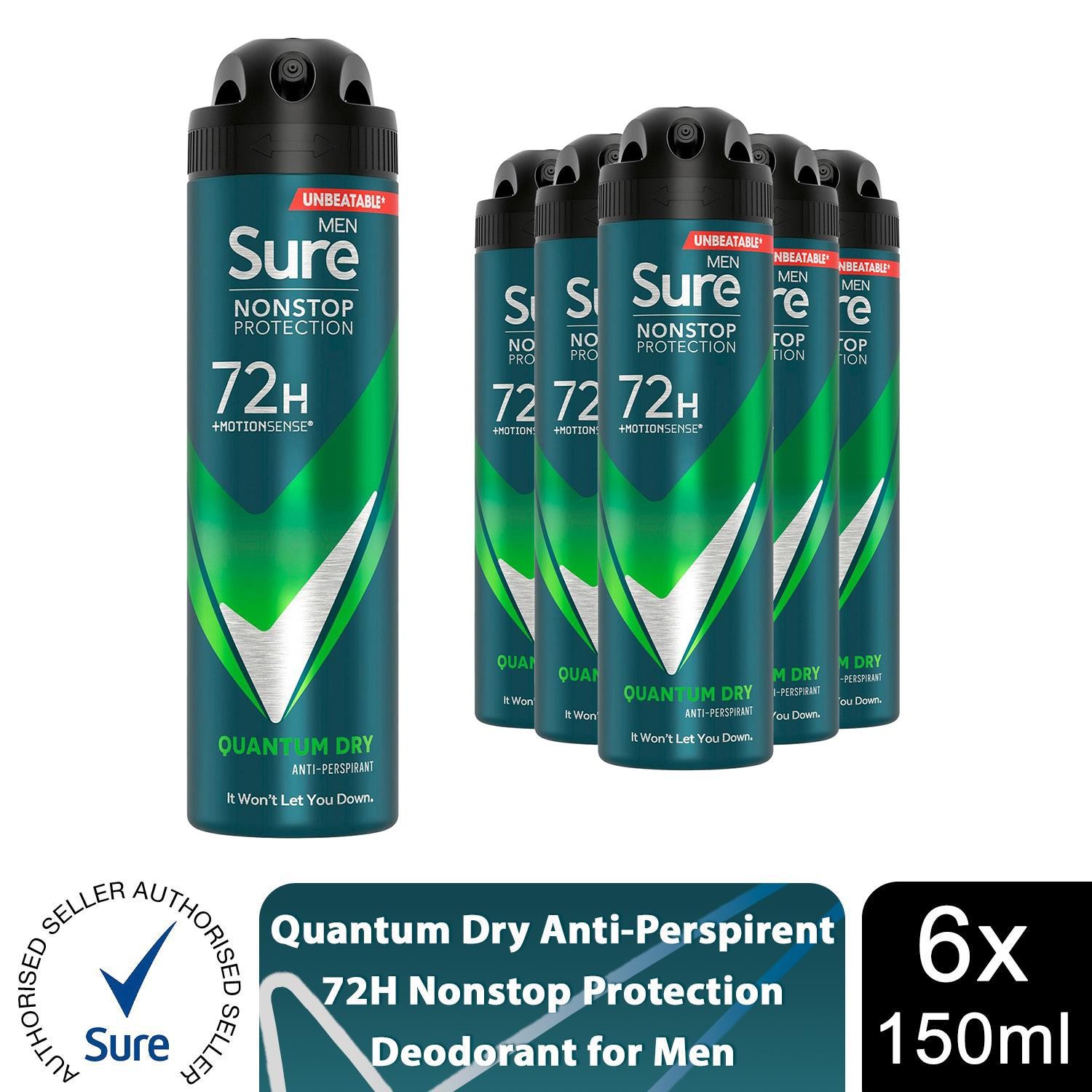Sure Men Nonstop Protection 72H Anti-Perspirant Deodorant Quantum Dry 150ml, 6pk