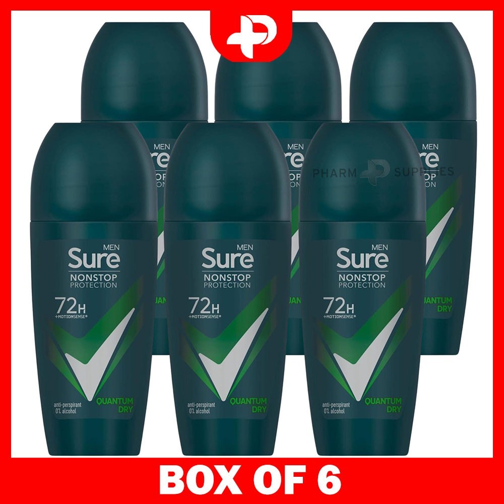 Sure Men Antiperspirant Deo Roll On 72H Nonstop Protection Quantum Dry 50ml, 6pk