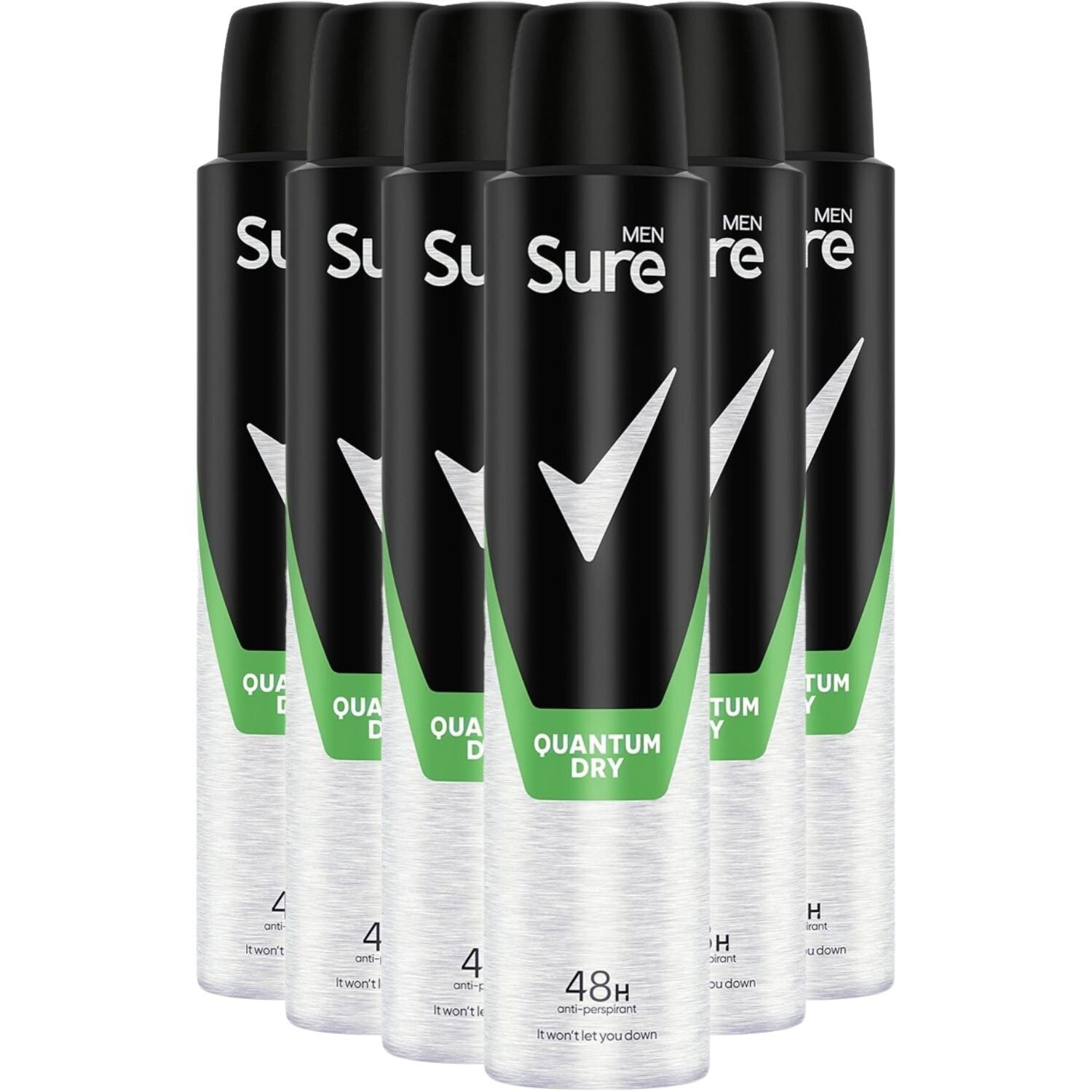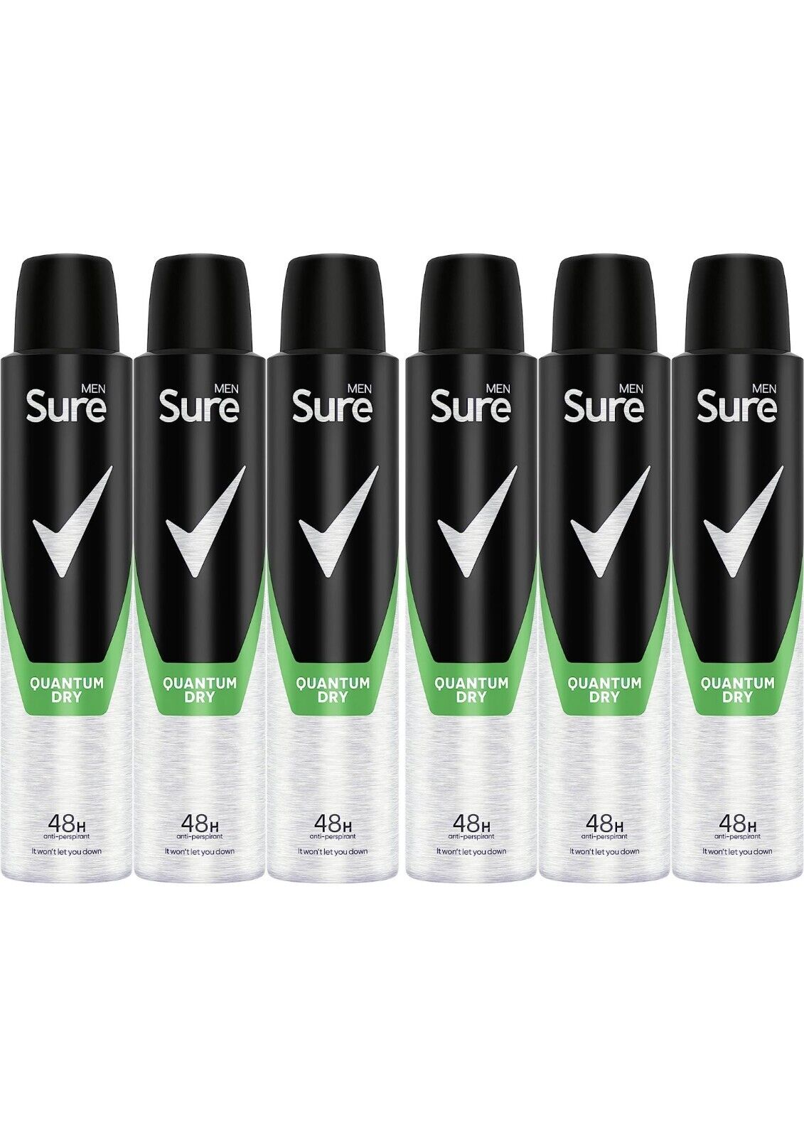 6 x Sure Men Quantum Dry AntiPerspirant Aerosol deodorant for men for 48HR 200ML