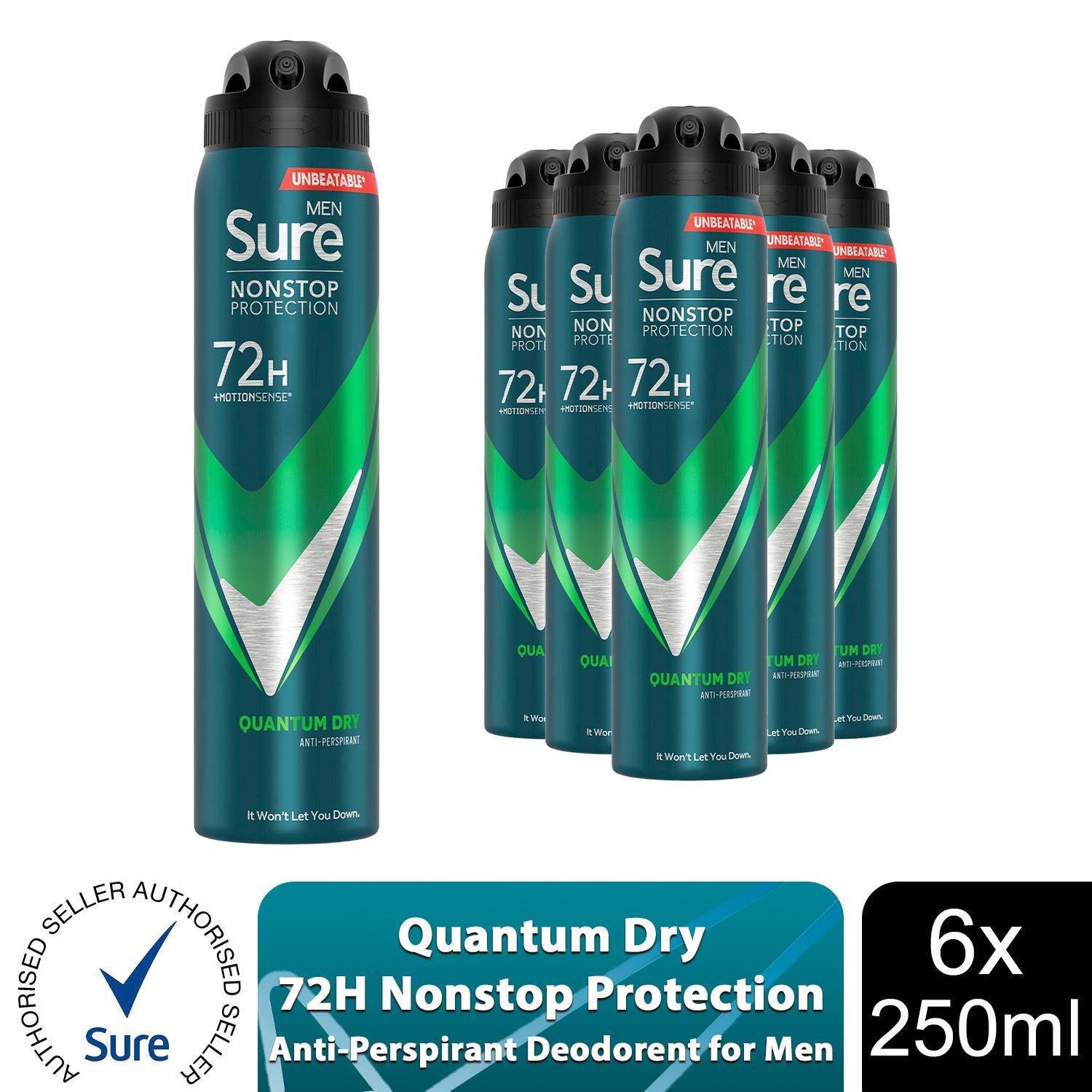 Sure Men Anti-perspirant 72H Nonstop Protection Quantum Dry Deodorant, 6x250ml