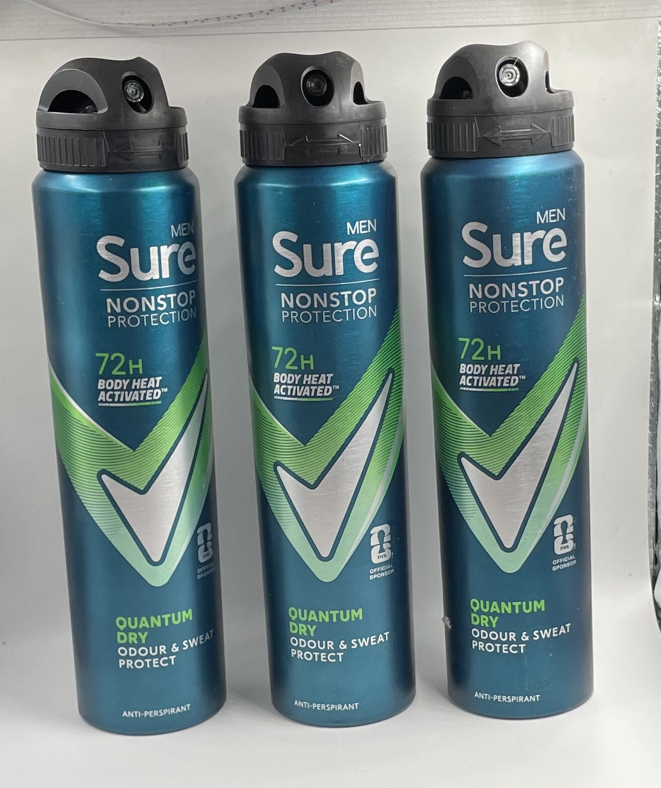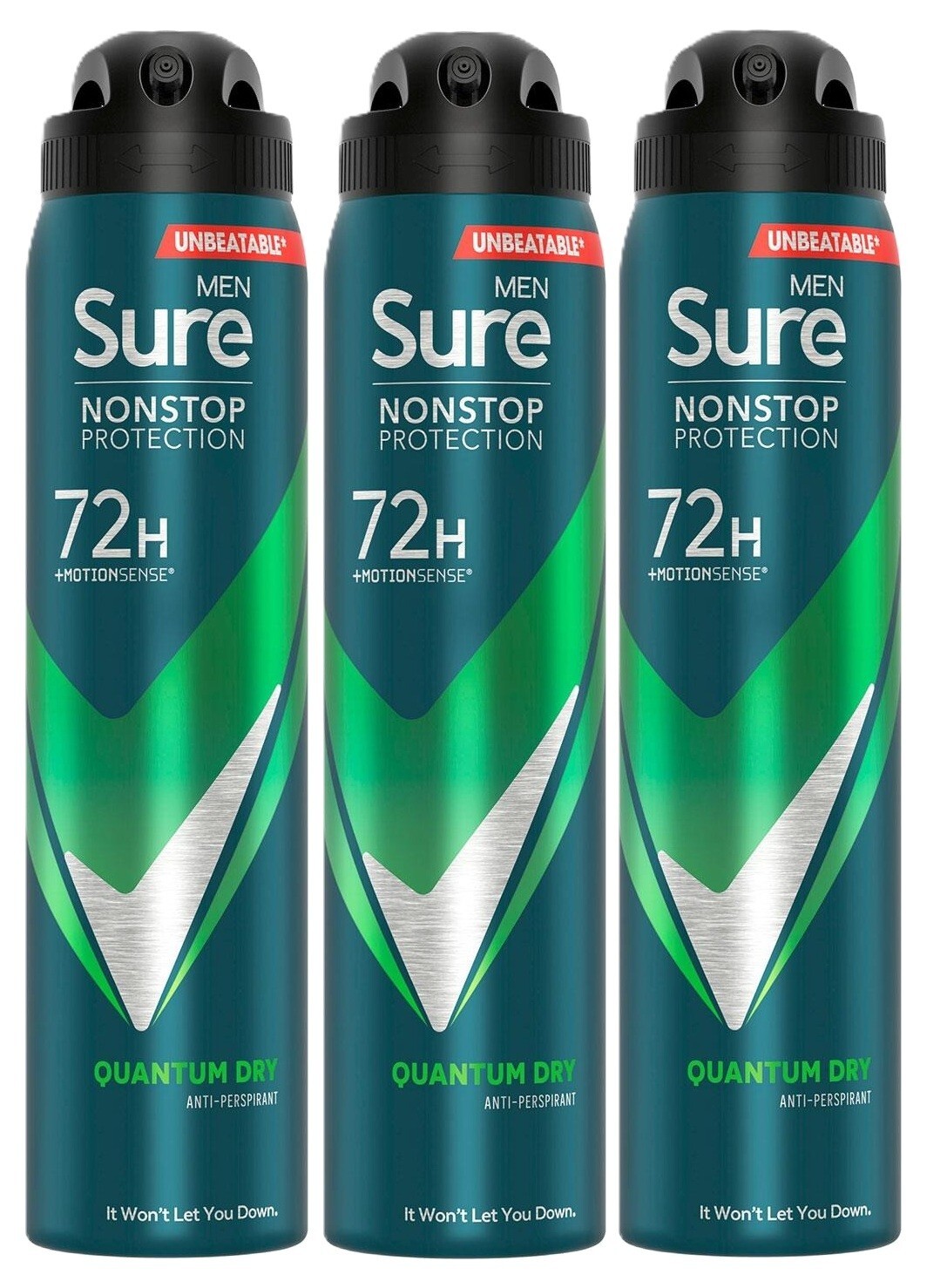 Sure Men Anti-perspirant 72H Nonstop Protection Quantum Dry Deodorant, 3x250ml