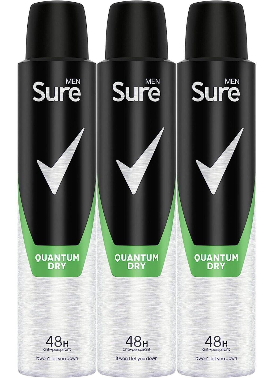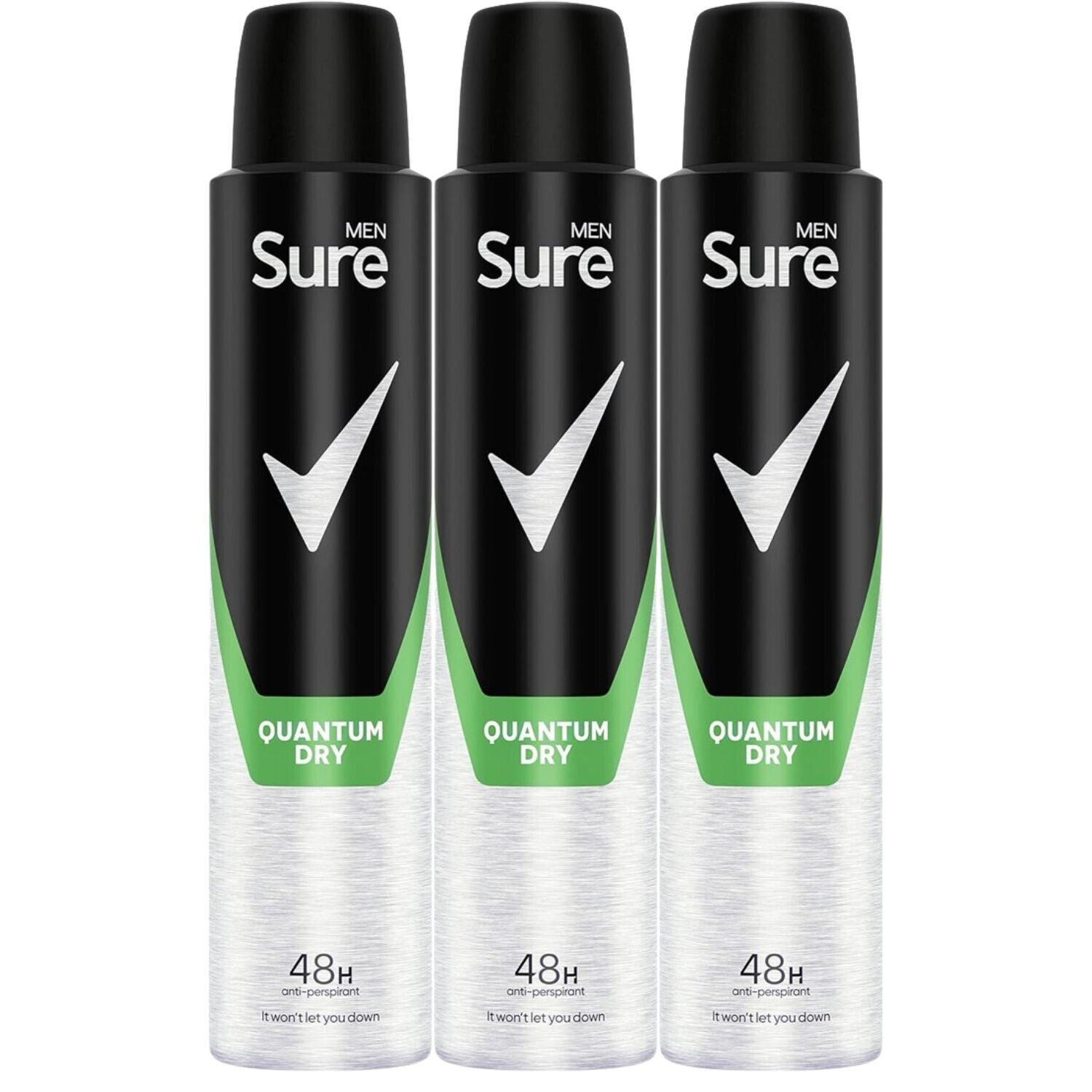 Sure Men Quantum Dry Anti-Perspirant Aerosol 200 ml, Pack 3
