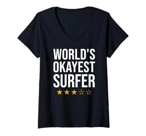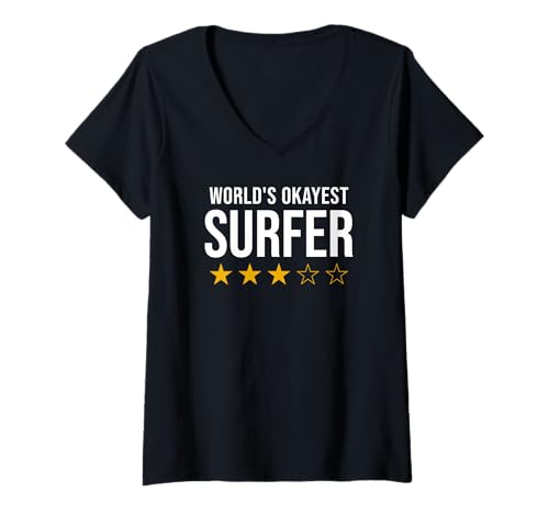 Women's World's Okayest Surfer Surf Surfboard V-Neck T-Shirt