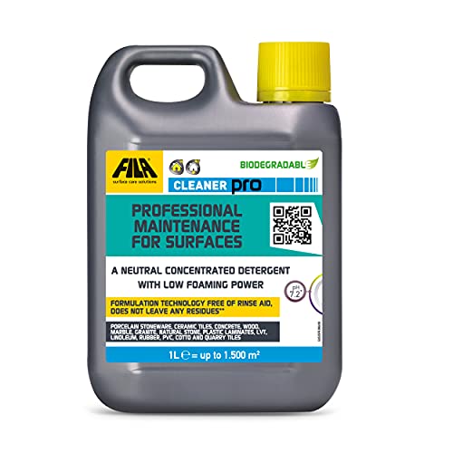 FILA Surface Care Solutions, CLEANER PRO, Concentrated Neutral Detergent - Up to 40 Washes - Hard Floor Cleaner Liquid for Floor Tiles in Marble, Porcelain, Stone etc, Laminate Floor Cleaner, 1L
