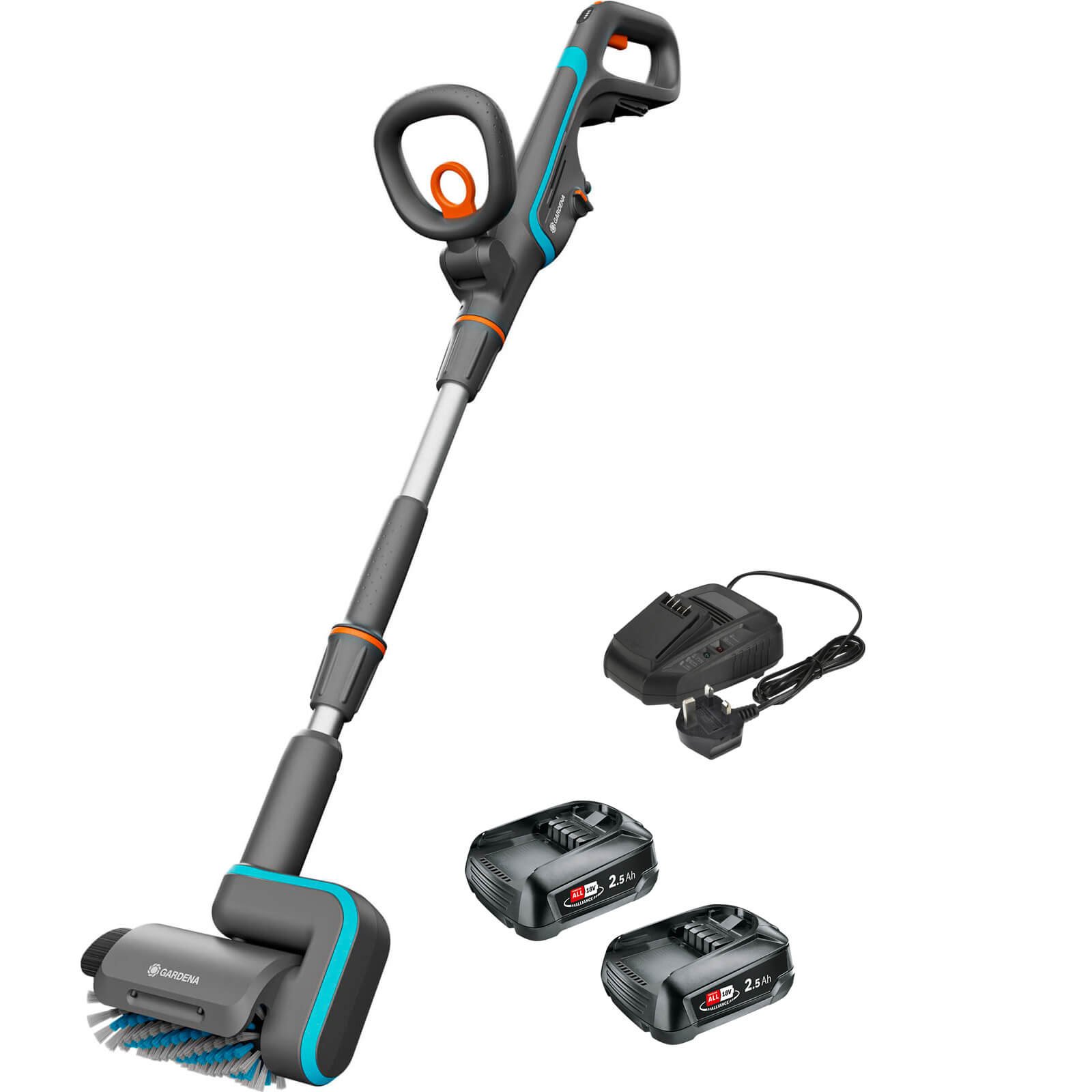 Gardena AQUABRUSH P4A 18v Cordless Patio and Surface Cleaner 2 x 2.5ah Li-ion Battery Charger