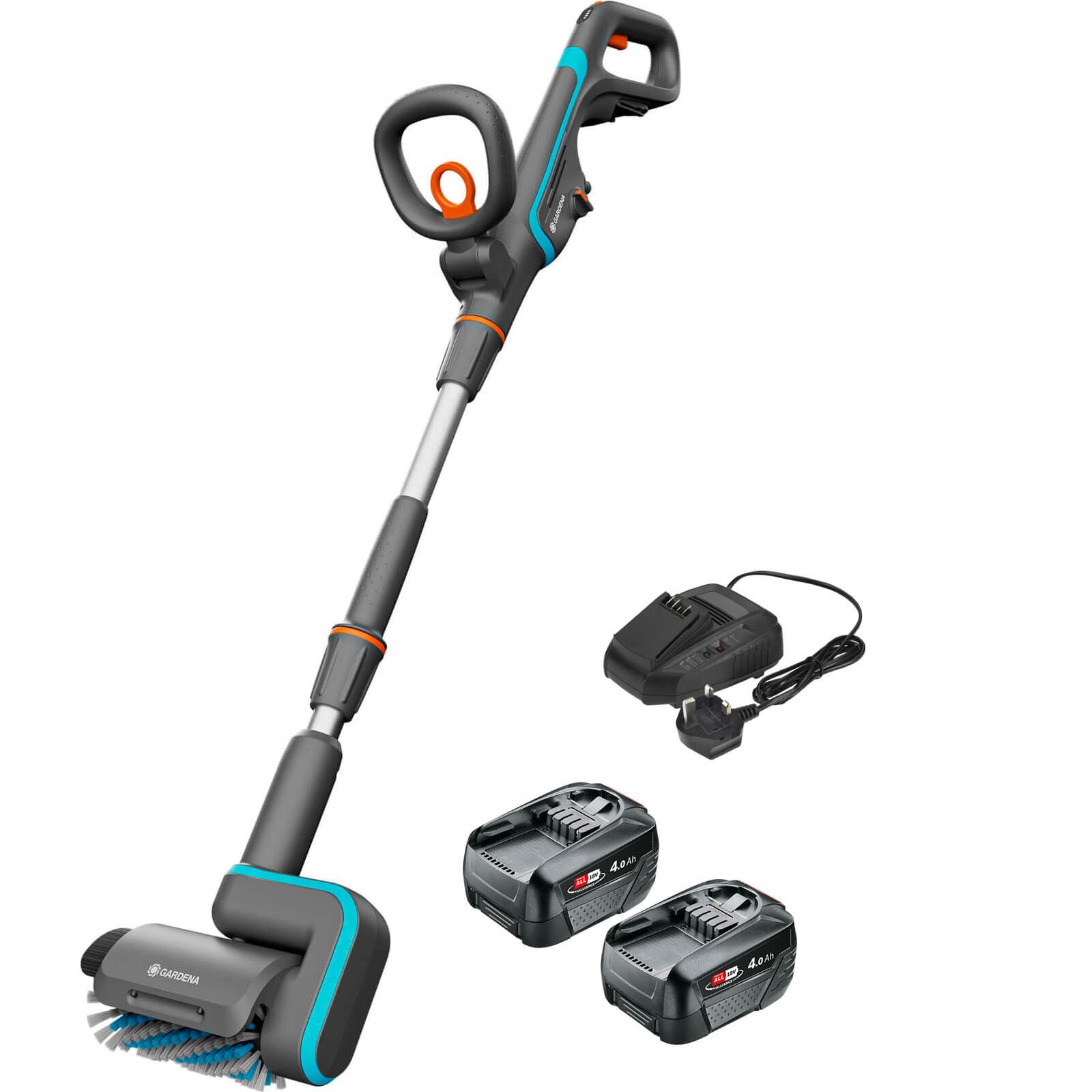 Gardena AQUABRUSH P4A 18v Cordless Patio and Surface Cleaner 2 x 4ah Li-ion Battery Charger