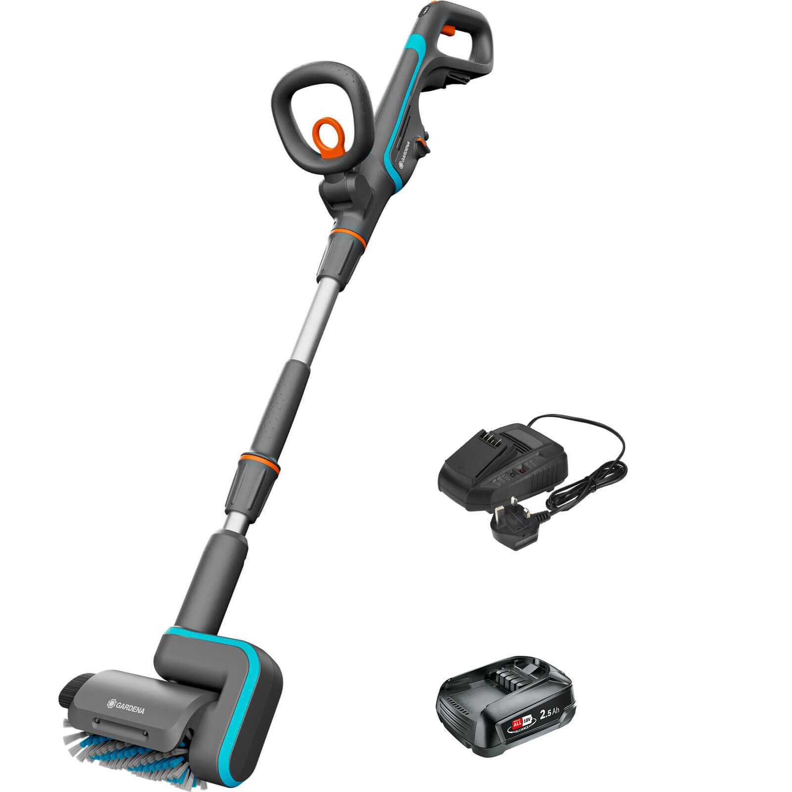 Gardena AQUABRUSH P4A 18v Cordless Patio and Surface Cleaner 1 x 2.5ah Li-ion Battery Charger