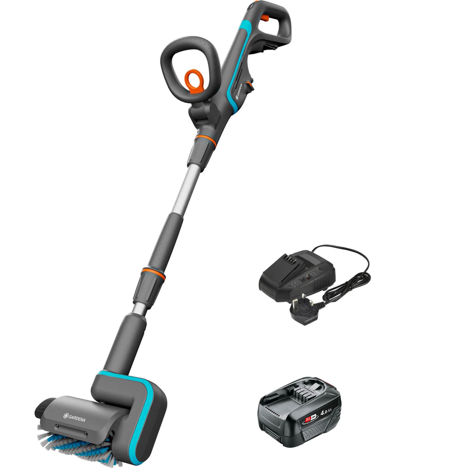 Gardena AQUABRUSH P4A 18v Cordless Patio and Surface Cleaner 1 x 4ah Li-ion Battery Charger