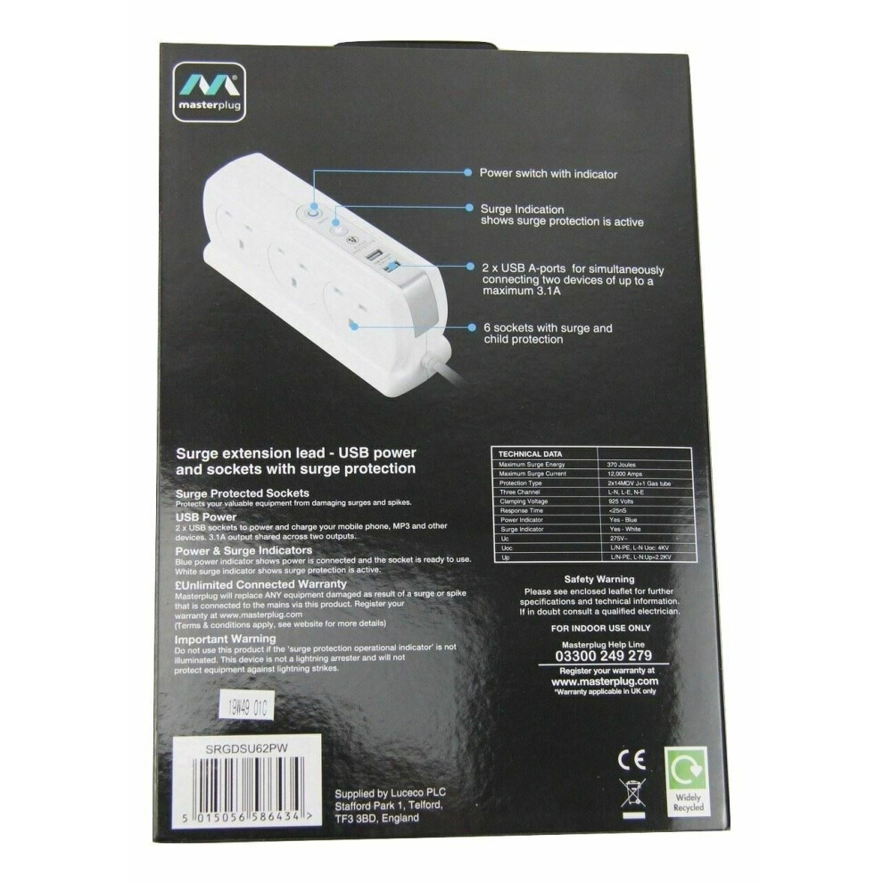 HomeComputers & AccessoriesCablesPower Strips & Surge ProtectorsSurge protected extension lead with usb