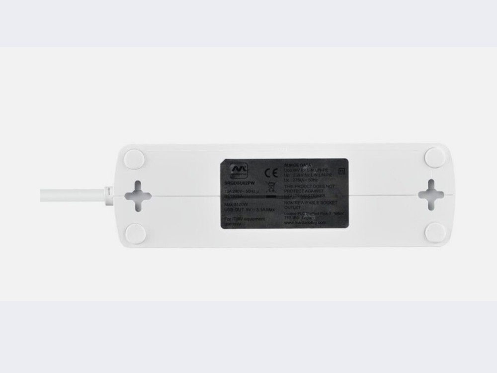 Masterplug Compact Surge Protected 4-Way 2xUSB Extension 2m