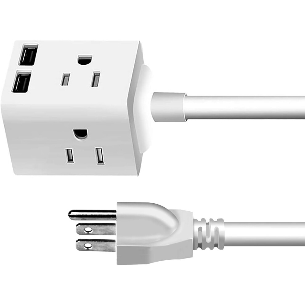 Portable Compact Surge Protector With USB, Extension Cord Safety Strip for White Mini Electronics