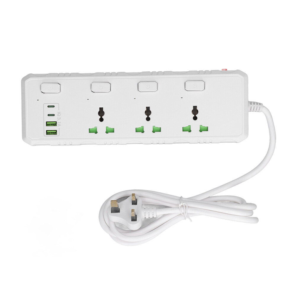 4000W 16A Surge Protector Extension Lead 2M | 4 USB Ports (2A + 2C) White