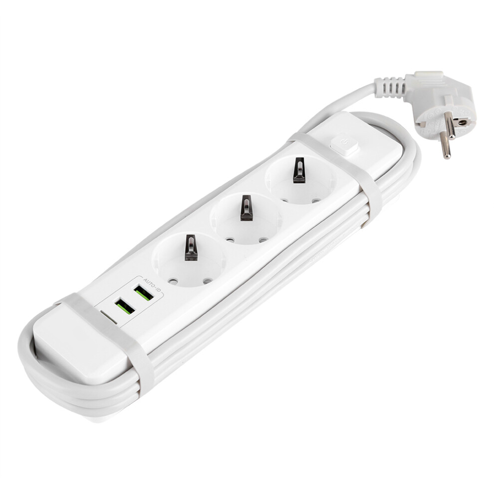 3-Outlet EU Power Strip, Multi-Socket Distributor, Surge Protector Extension Cord Adapter