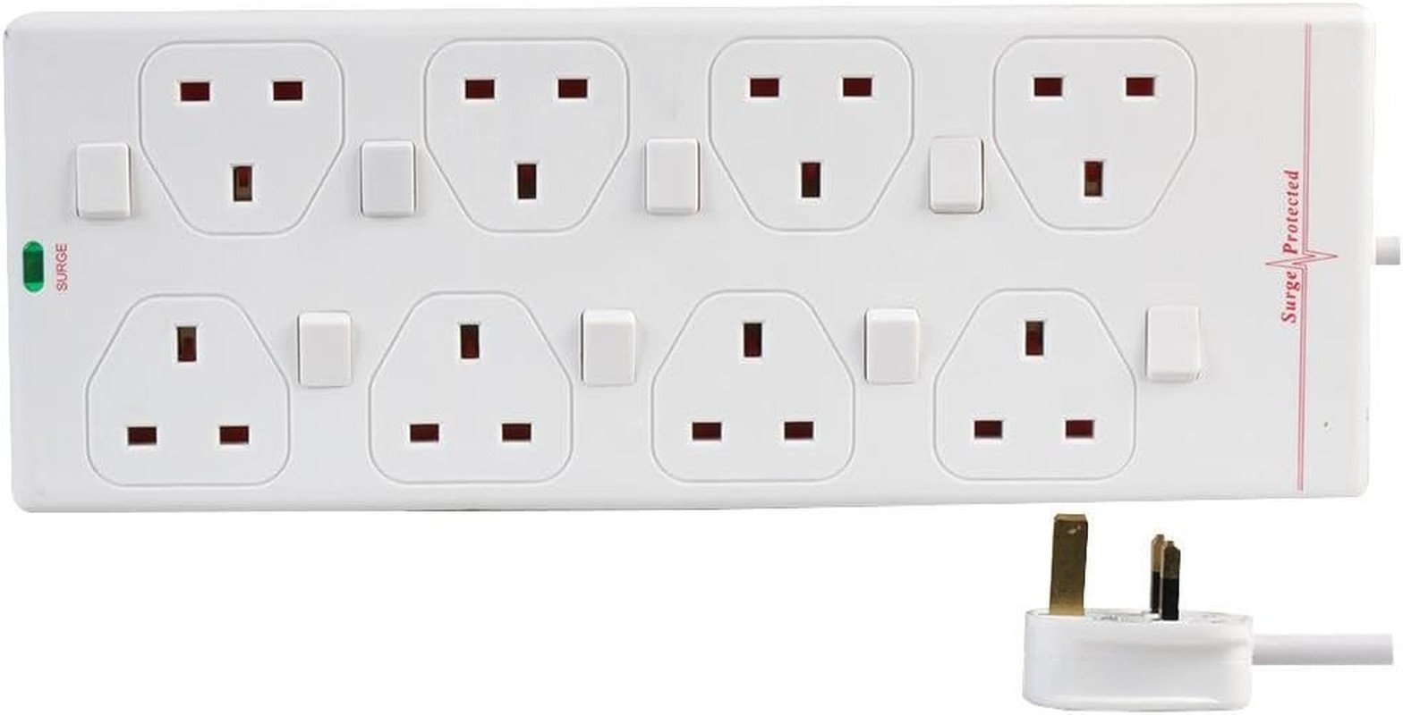 6 GANG SURGE PROTECTOR 1m EXTENSION LEAD white uk plug 13a
