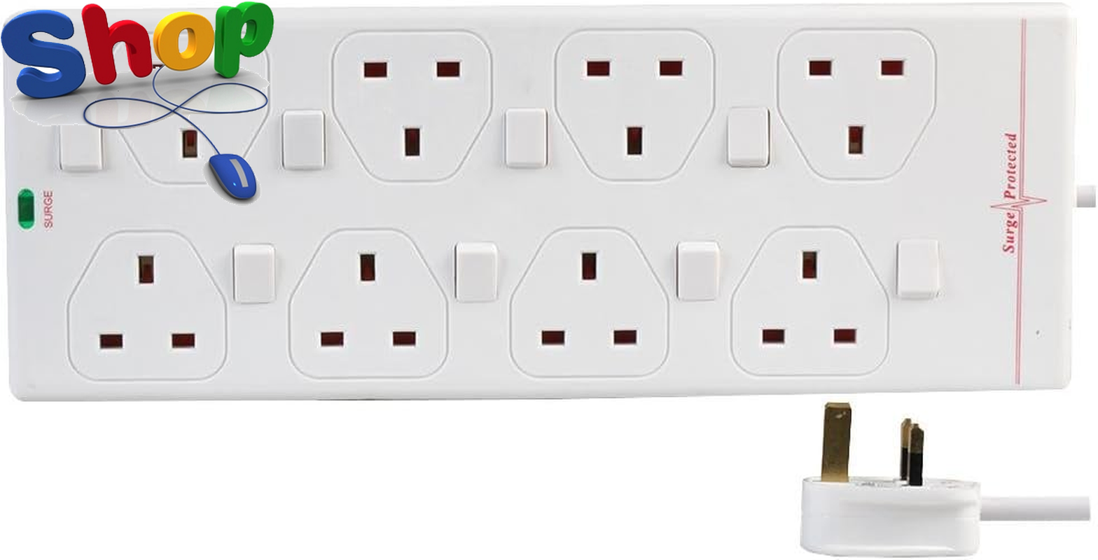 8-Outlet Surge Protector Extension Lead, 13A, 250V, 5M Cable, UK Plug Type G – P