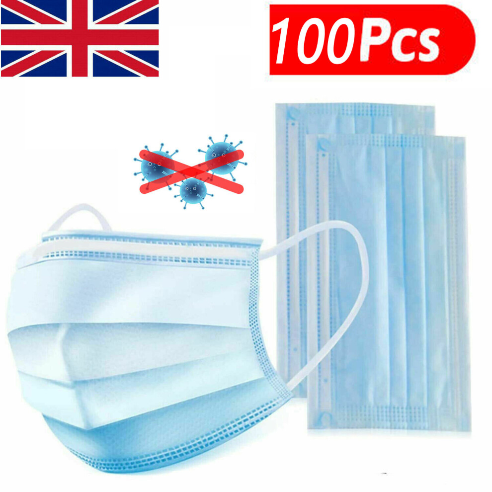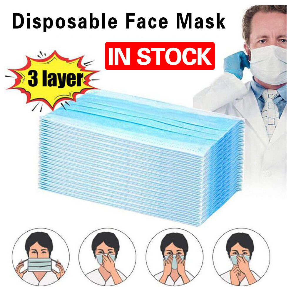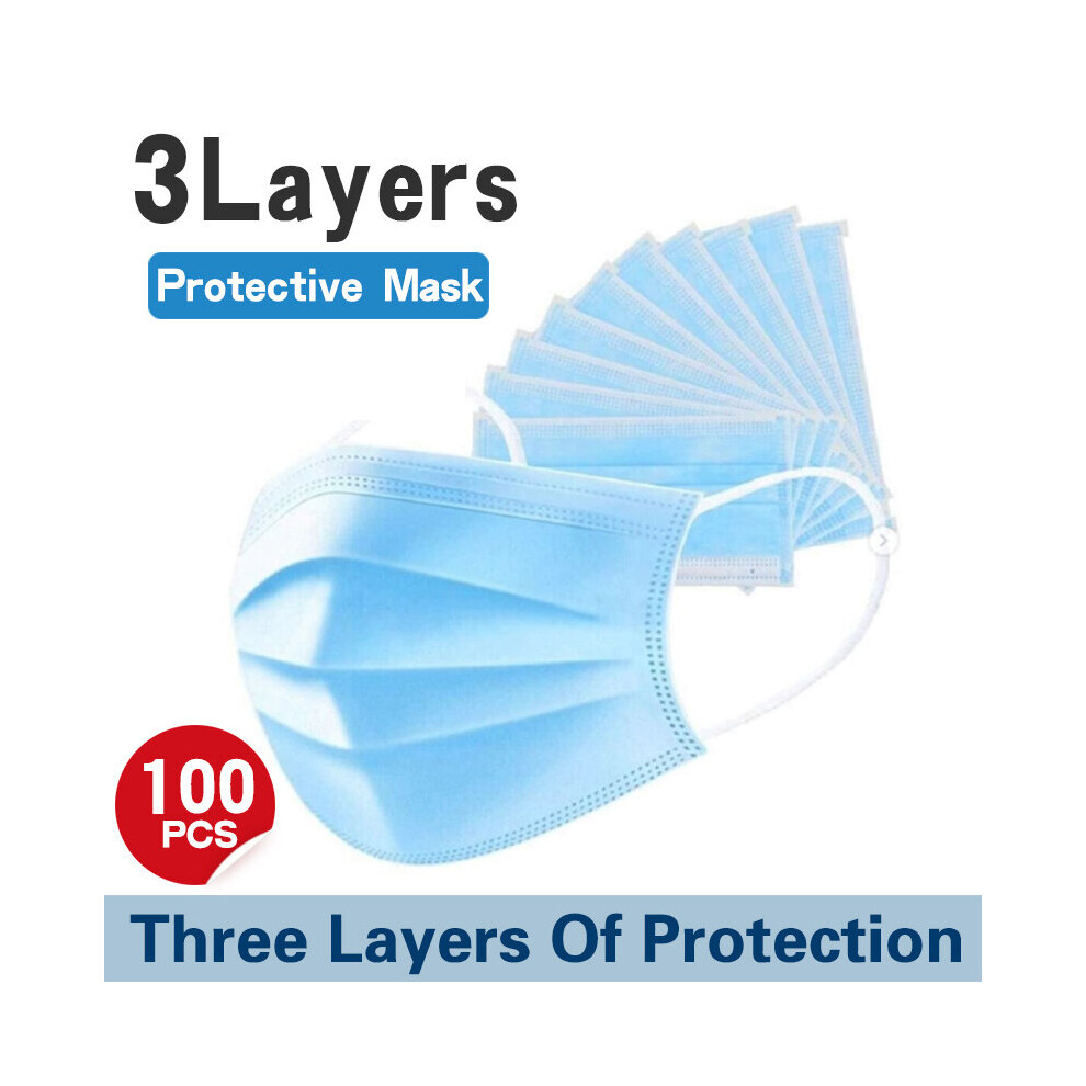 100PCS Disposable Face Masks 3 Ply Dental Surgical Mask Covering