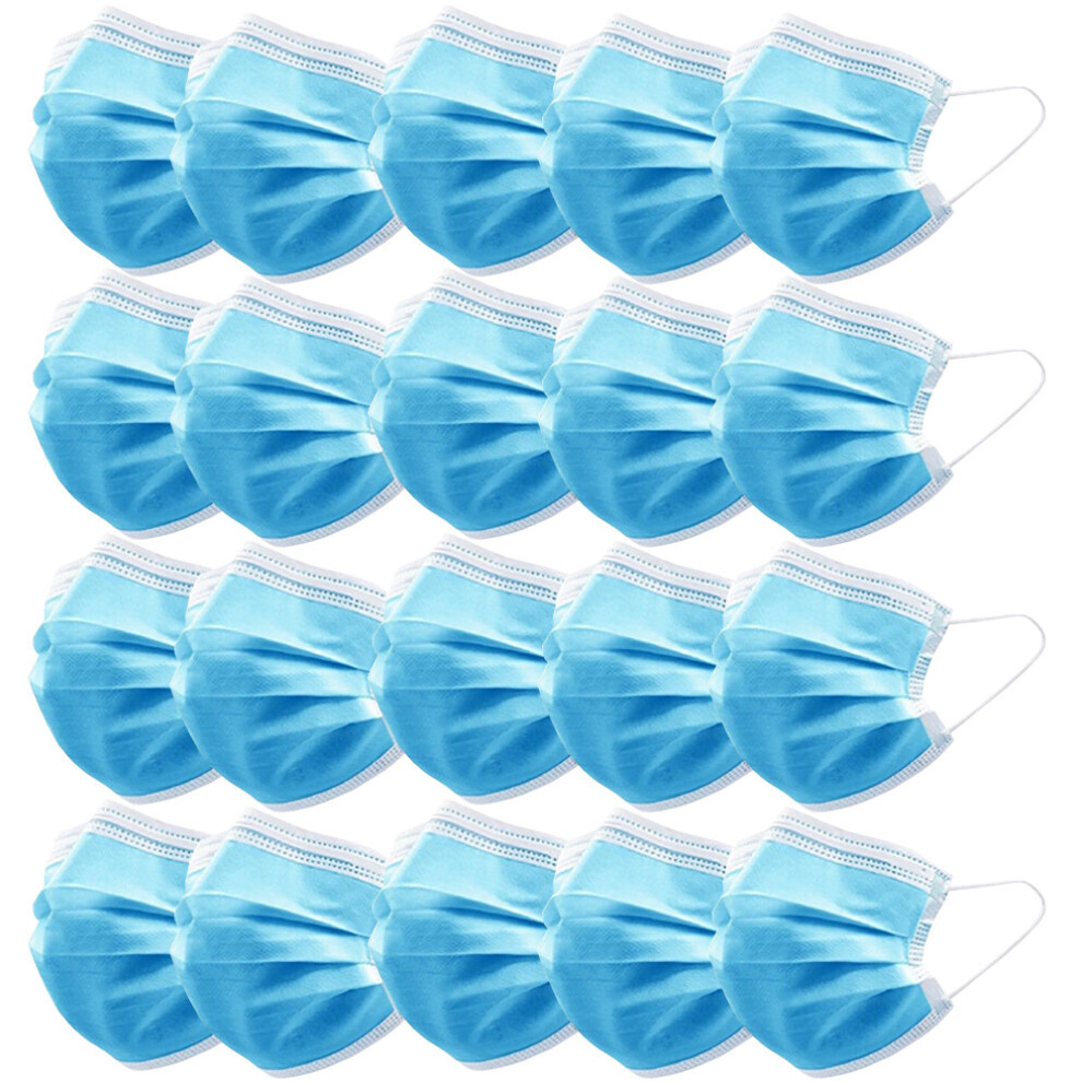 (Blue, 20pcs) 100 Face Mask Surgical Disposable Mouth Guard Cover Face Masks