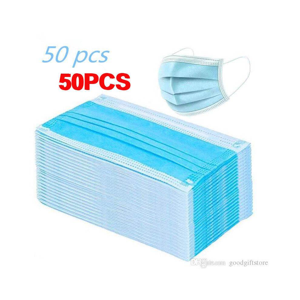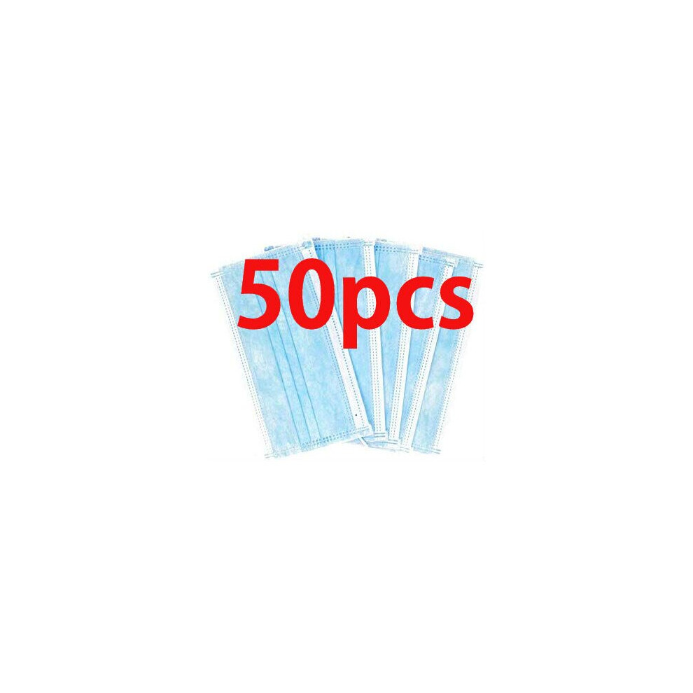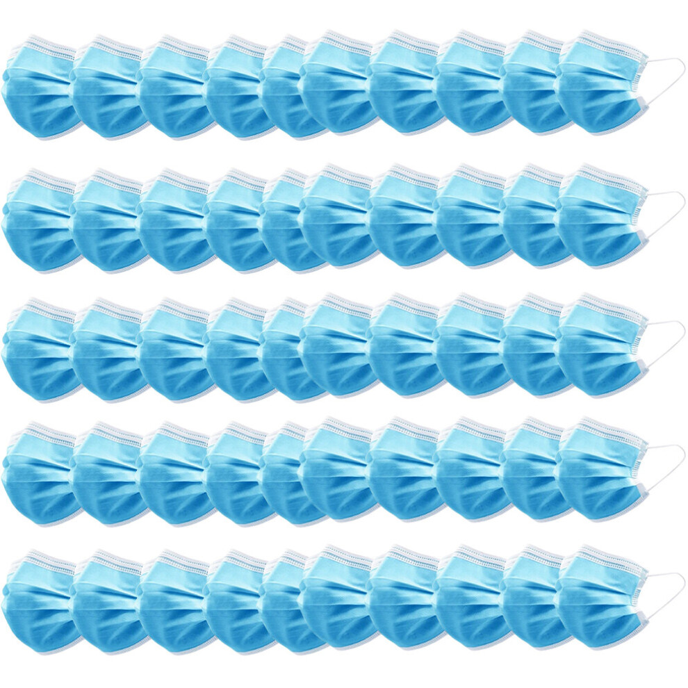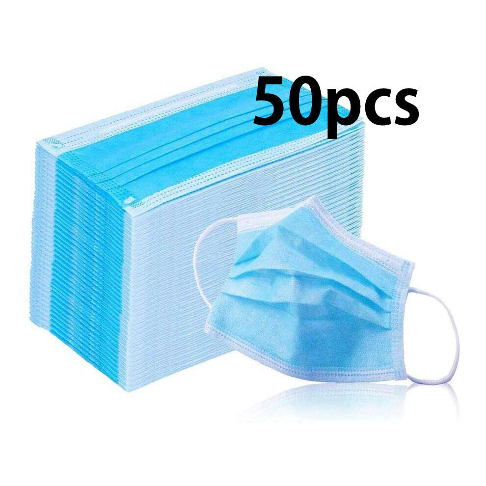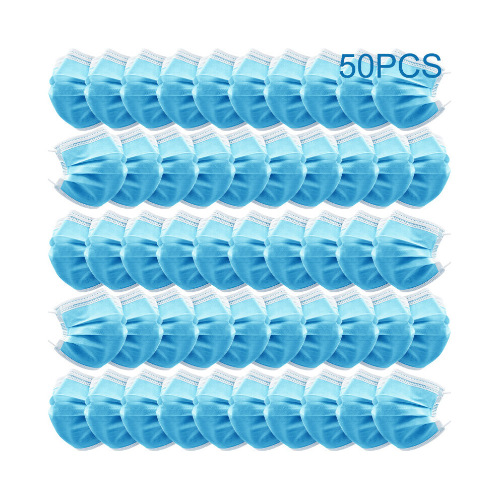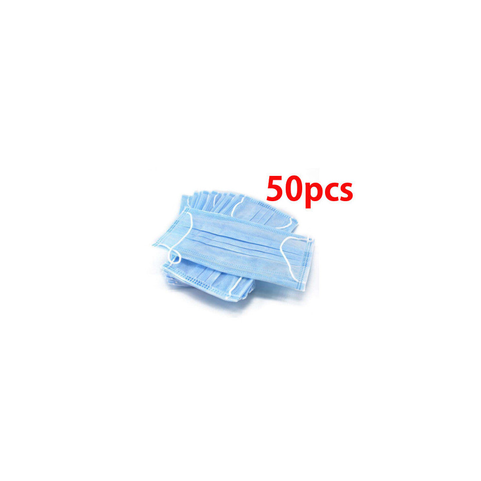 (Blue, 50pcs) 100 Face Mask Surgical Disposable Mouth Guard Cover Face Masks