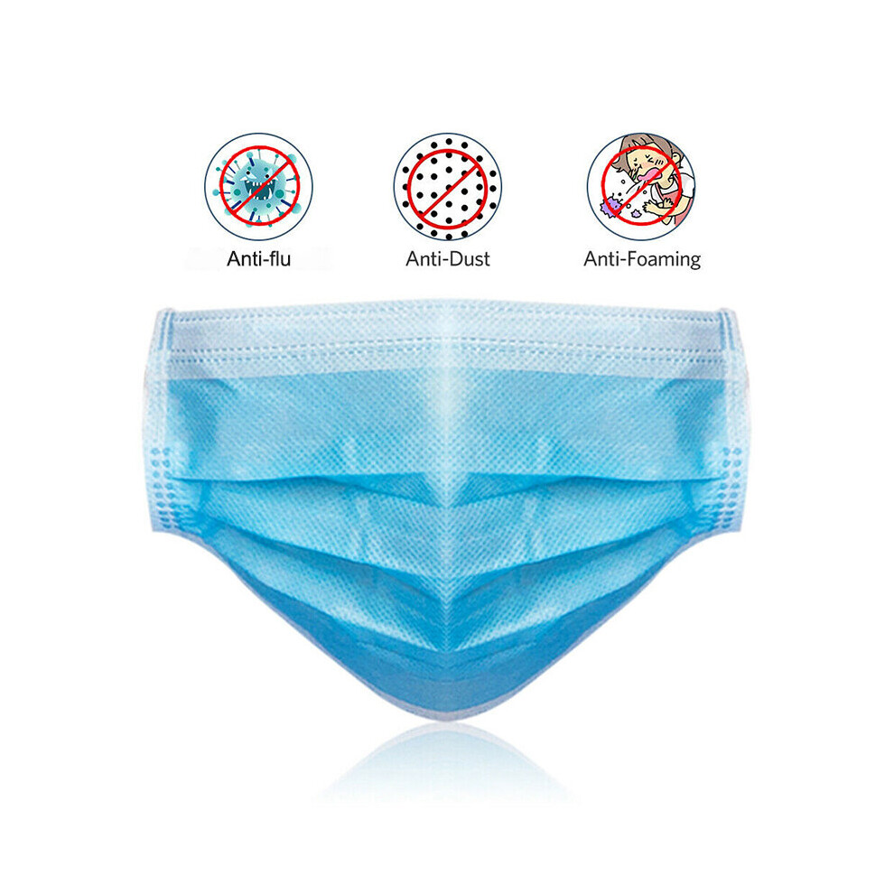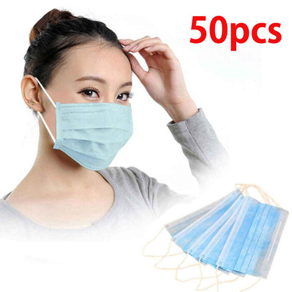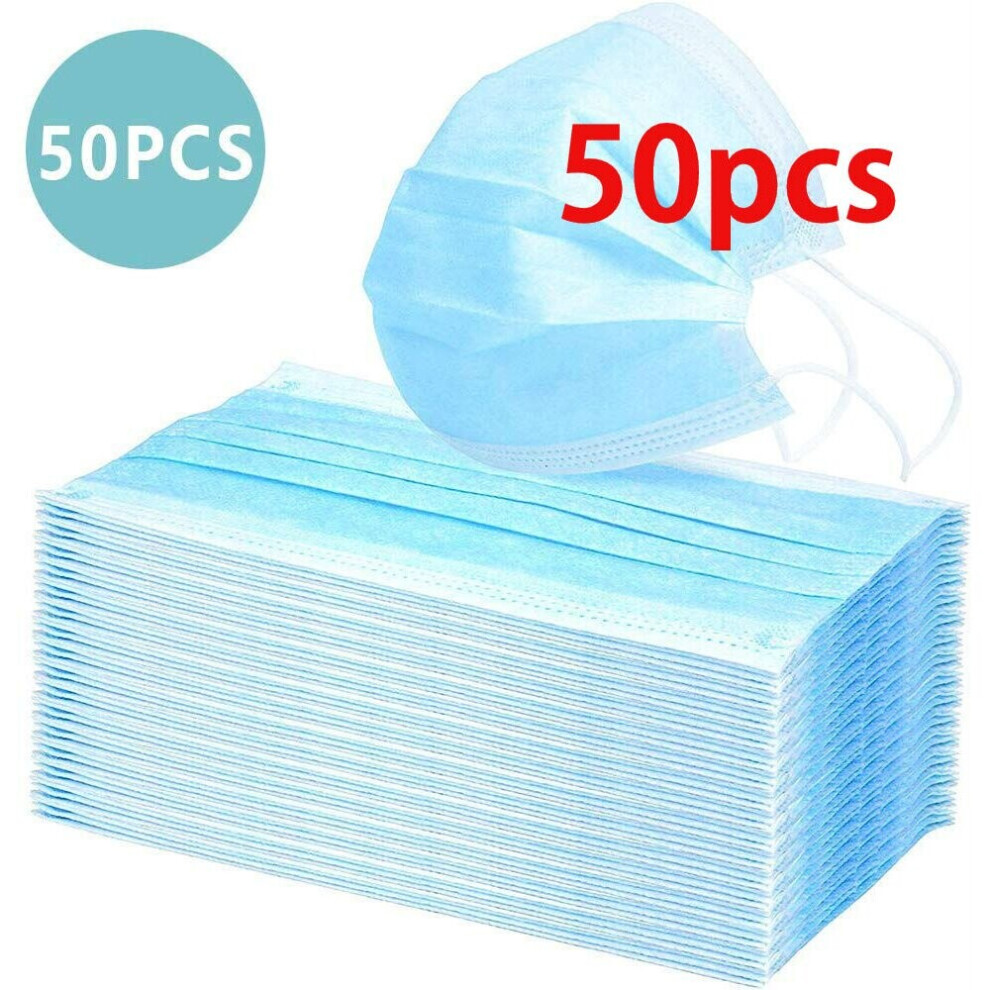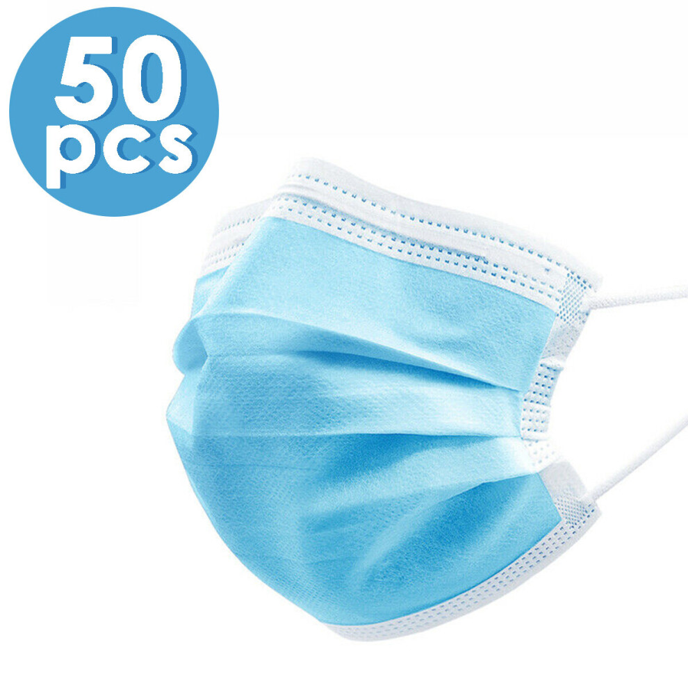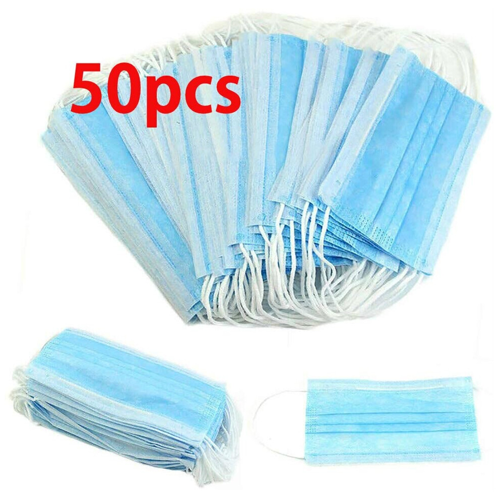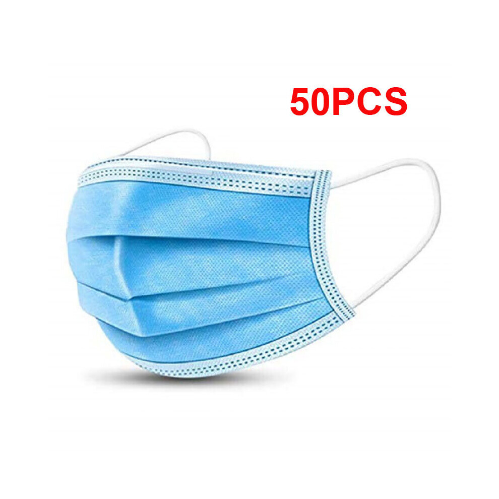 (Blue, 50pcs) 100 Face Mask Surgical Disposable Mouth Guard Cover Face Masks