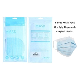 Disposable 3 Ply Surgical Face Mask Pack 10's