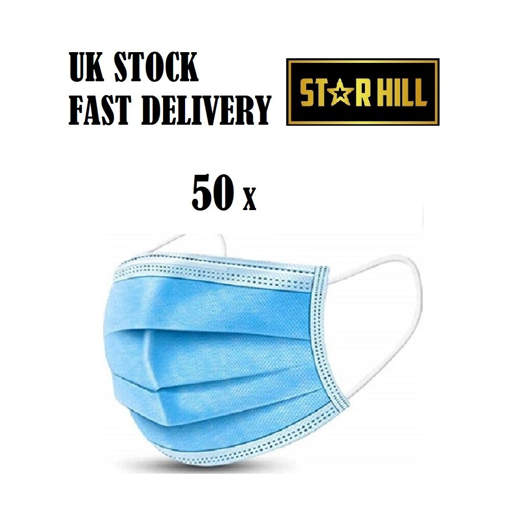 50 X DISPOSABLE 3 PLY FACE MASKS NON-MEDICAL SURGICAL MASK
