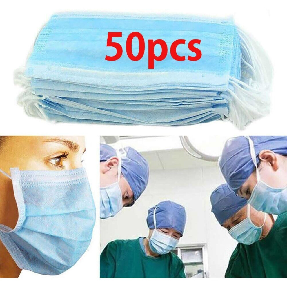 (Blue, 50pcs) Disposable Face Mask Surgical Medical Mask