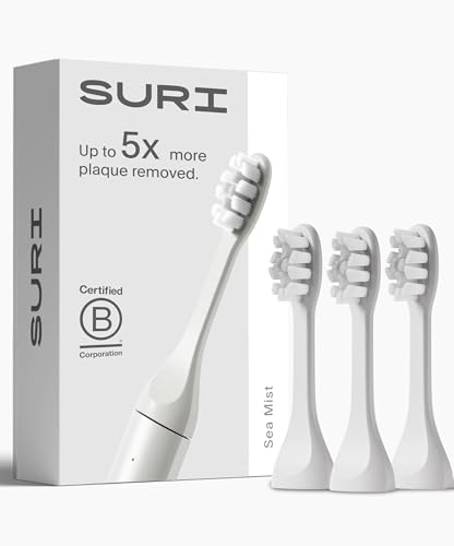 SURI Electric Toothbrush Heads - Plant-Based, Recyclable, Sea Mist (Pack of 3)