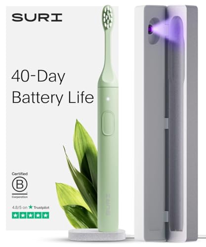 SURI Sonic Electric Toothbrush with UV Cleaning Travel Case | 40+ Day Battery |