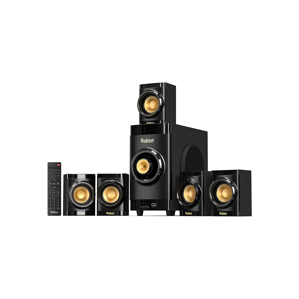5.0 Black Surround Sound Speakers Set - 1150W Home Cinema Speakers, Surround Sound for TV, Hi-Fi Home Cinema Audio System - Black Wooden