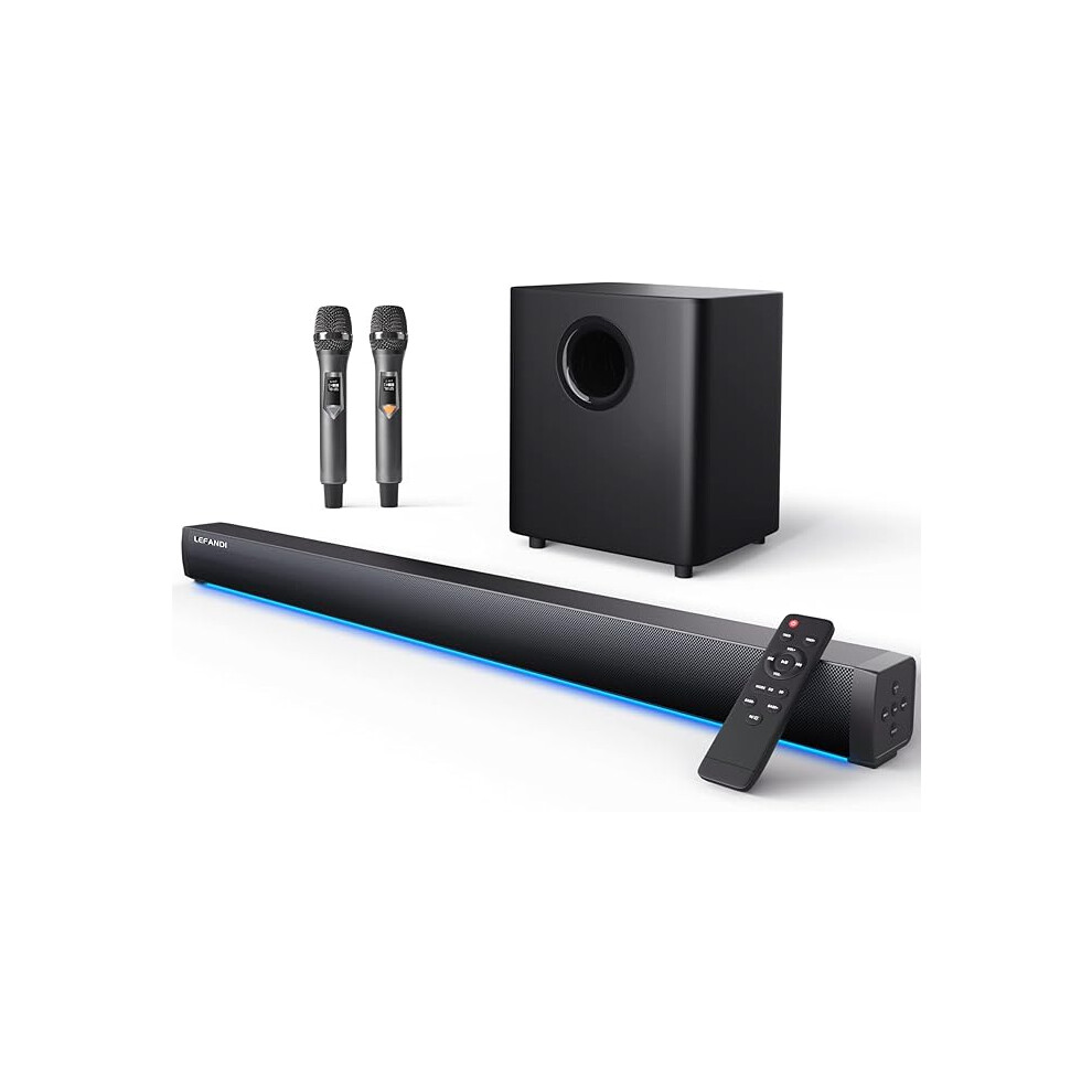 LEFANDI Soundbar for TV with Subwoofer, Bluetooth 5.0 TV Speakers with 2 Wireless Microphones, Surround Stereo Sound System with HDMI ARC