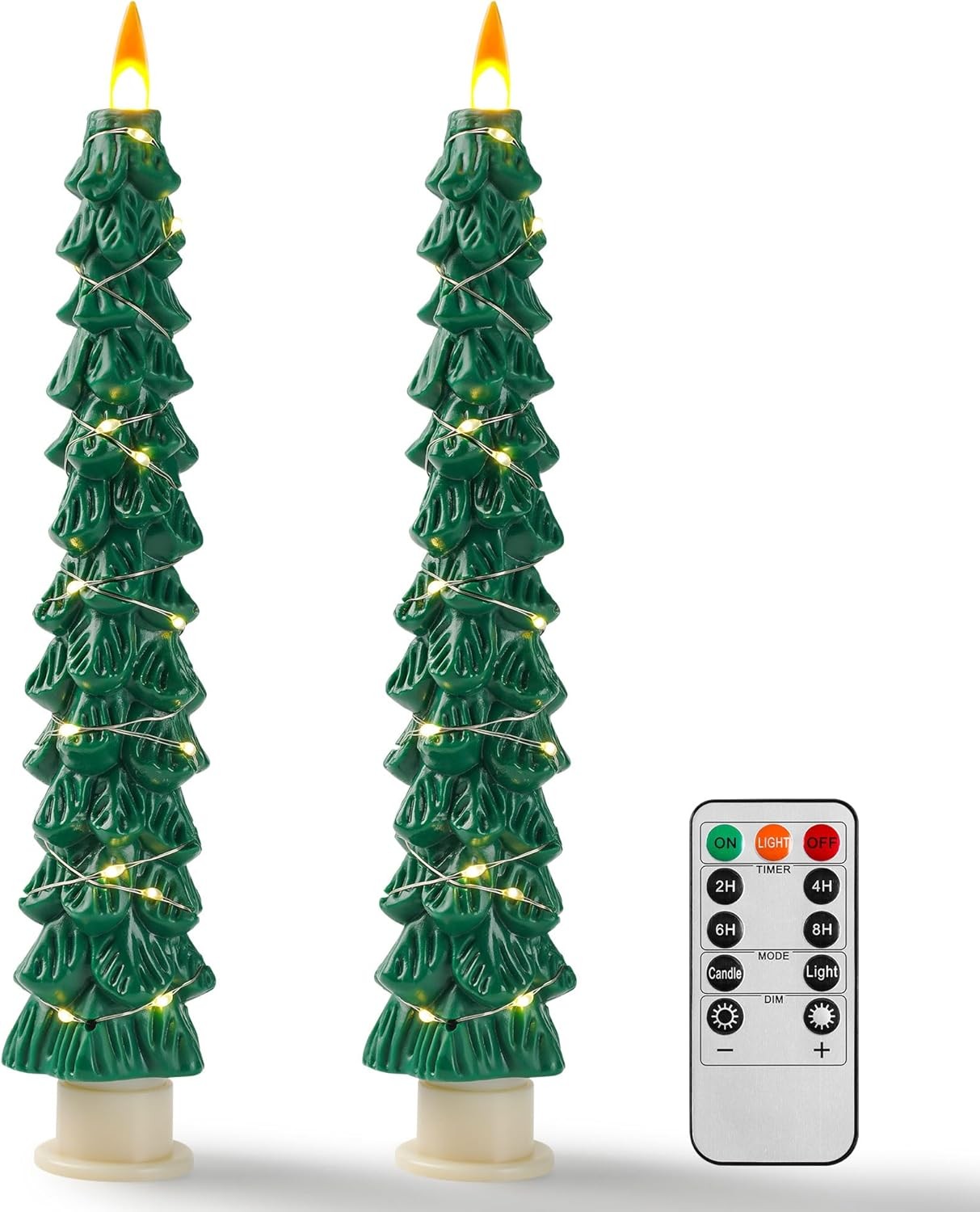 Christmas Tree Candles Surrounded by Fairy Lights, LED Flameless Candle Lights w